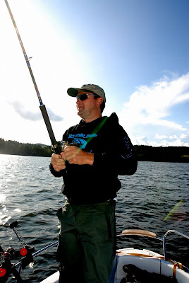 Slik har jeg ofte sett Olsen de siste fiskedagene. Og i dag var det på han igjen. Vips og gutten landa en på 8000 gr blank.