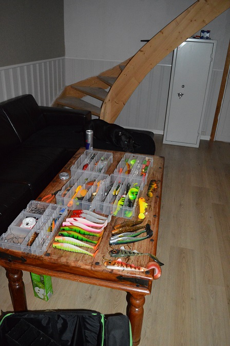 utstyret oppbevares i bft predator jerkbait bag, er vell ett kjent problem med gjeddefiskere att betes bokser ligger slengt rundt i båten siden det kan være litt vanskelig og finne en bag som er stor nok til og oppbevare alt i, denne baggen kommer også med ett eget avlukke som man kan henge favoritt betene sine i så de blir enkle og få tak i:)