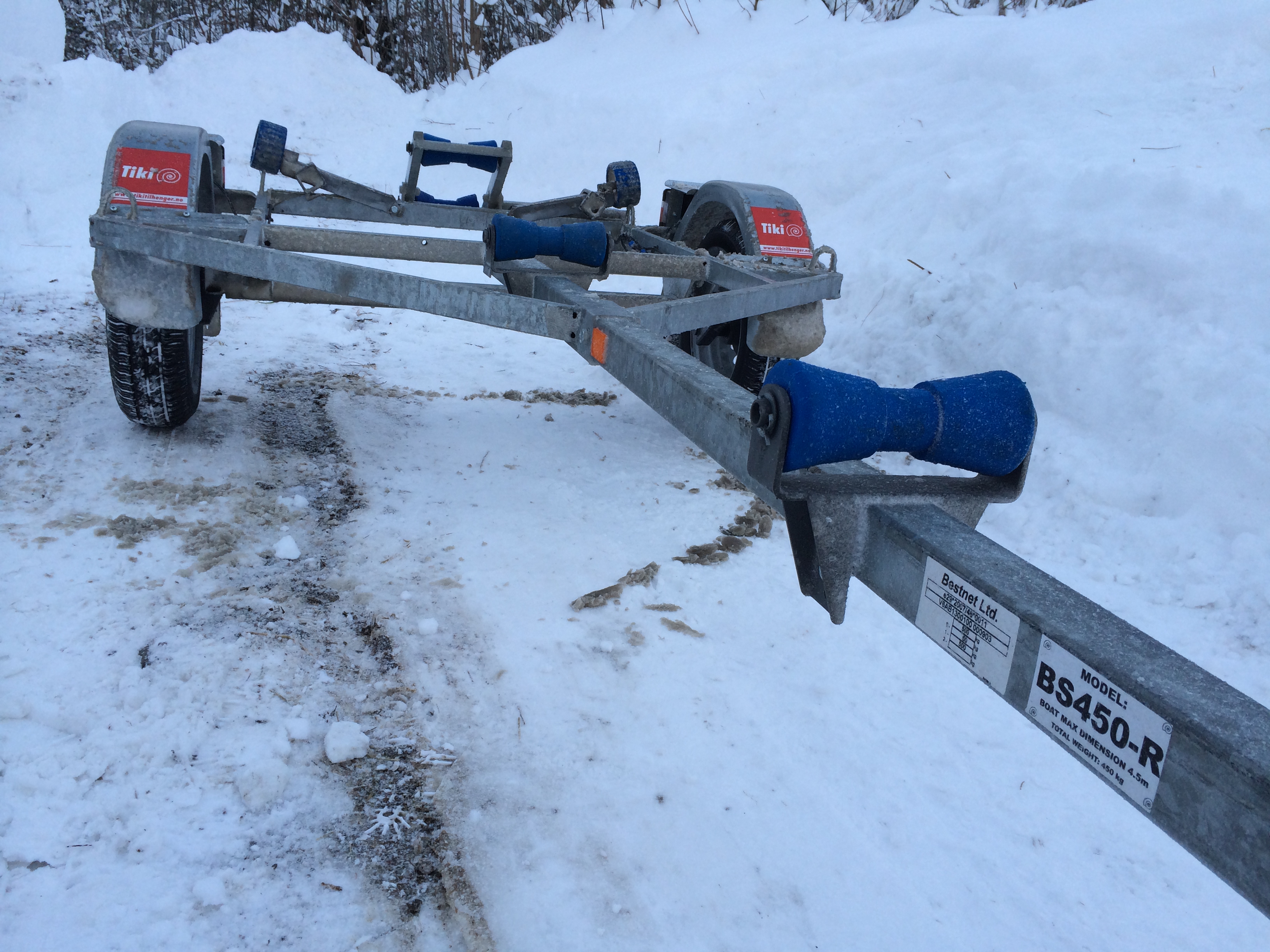 var i dag og henta ny båthenger, det ble en tiki bs450-r som jeg kjøpte av tilhengernor på dal. førsteinntrykket av hengeren er veldig bra, ser solid ut og lå fint bak bilen, riktignok uten båt på.