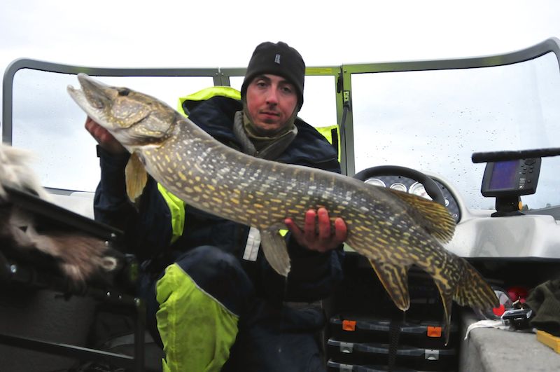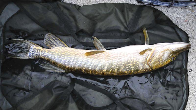 Og ganska riktig luska det ei gjedde der, det tok en halv dag før den tok, men sånn er det.