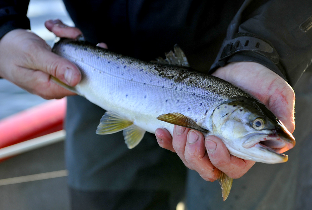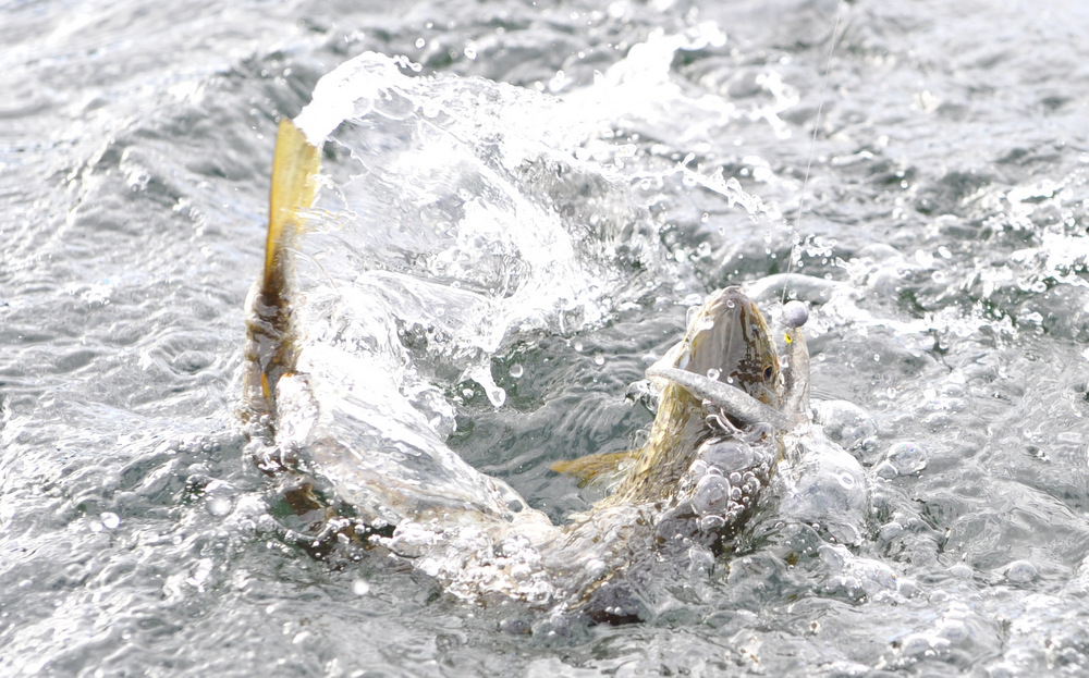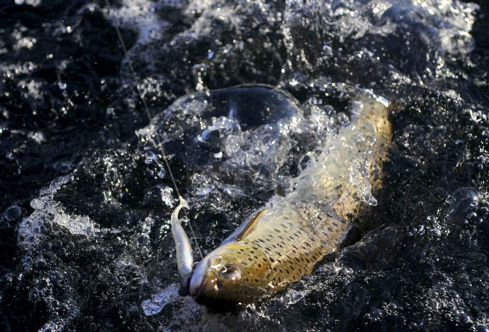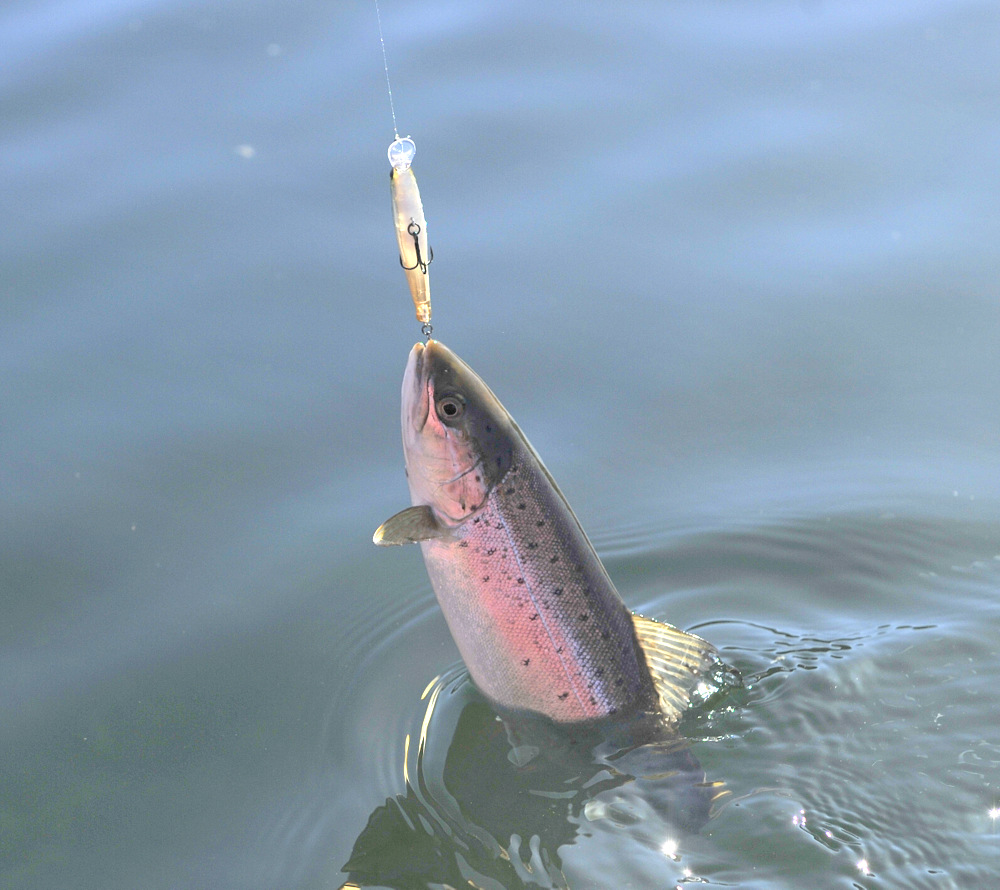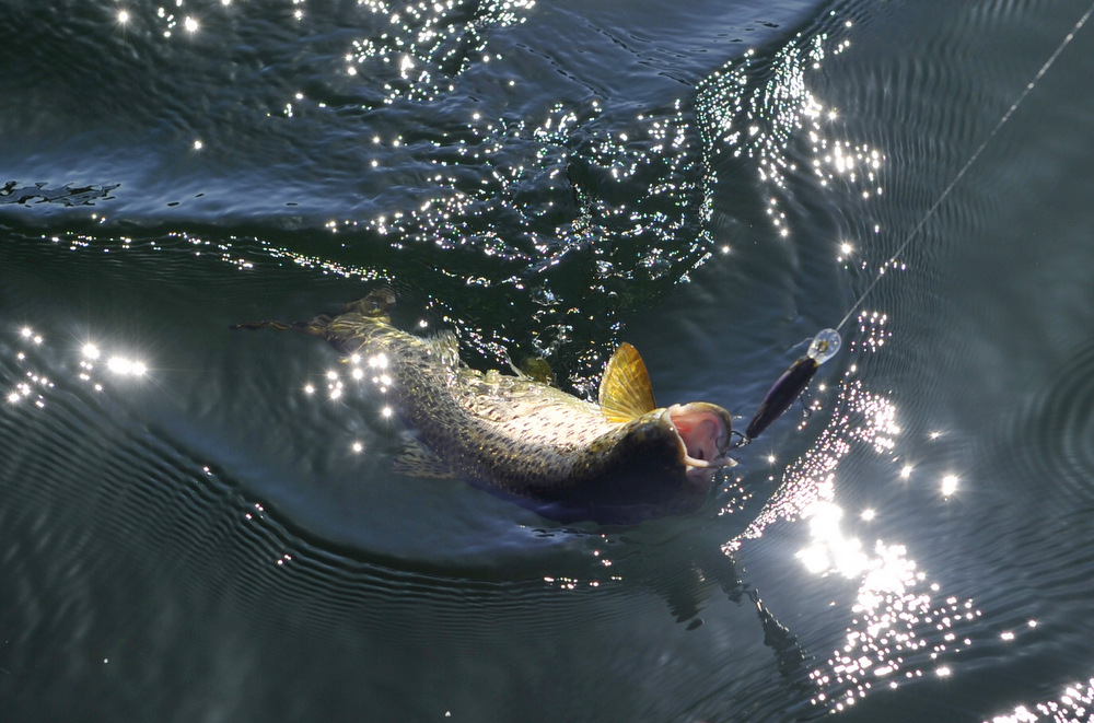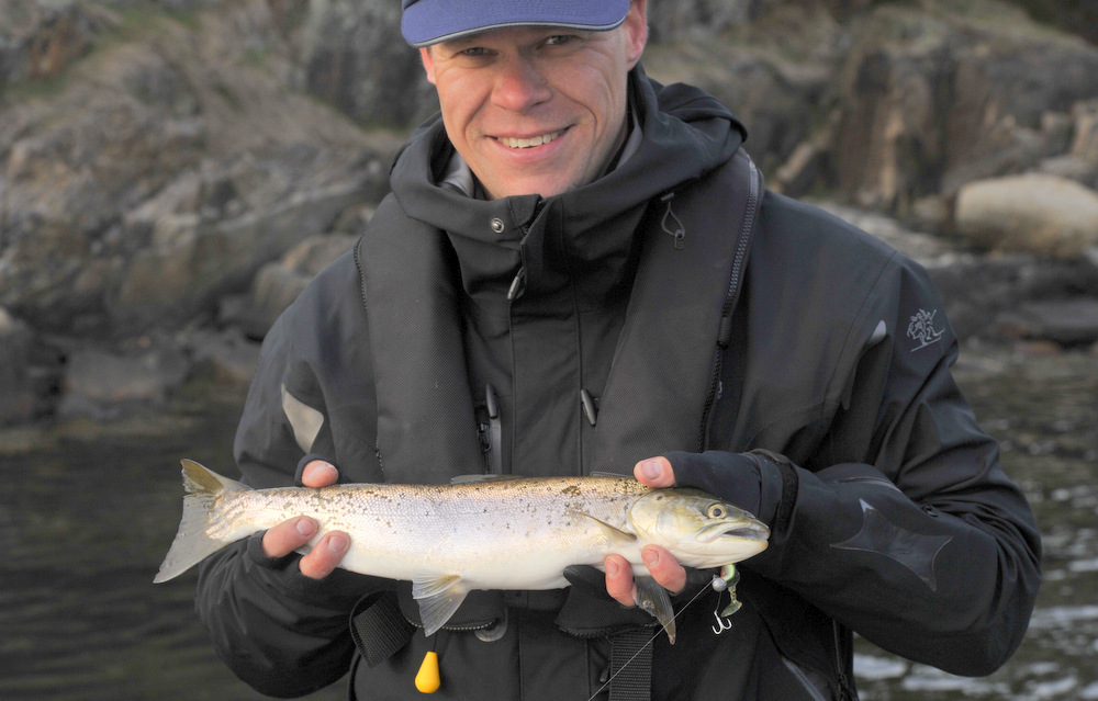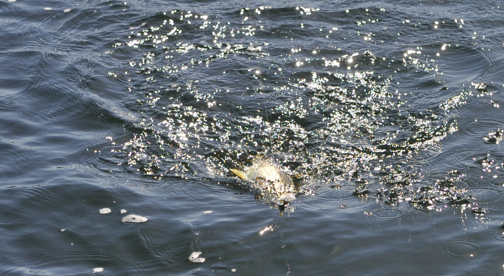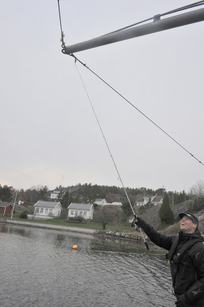 Denne steig fra flere meter faktisk og hugg til rett ved båten