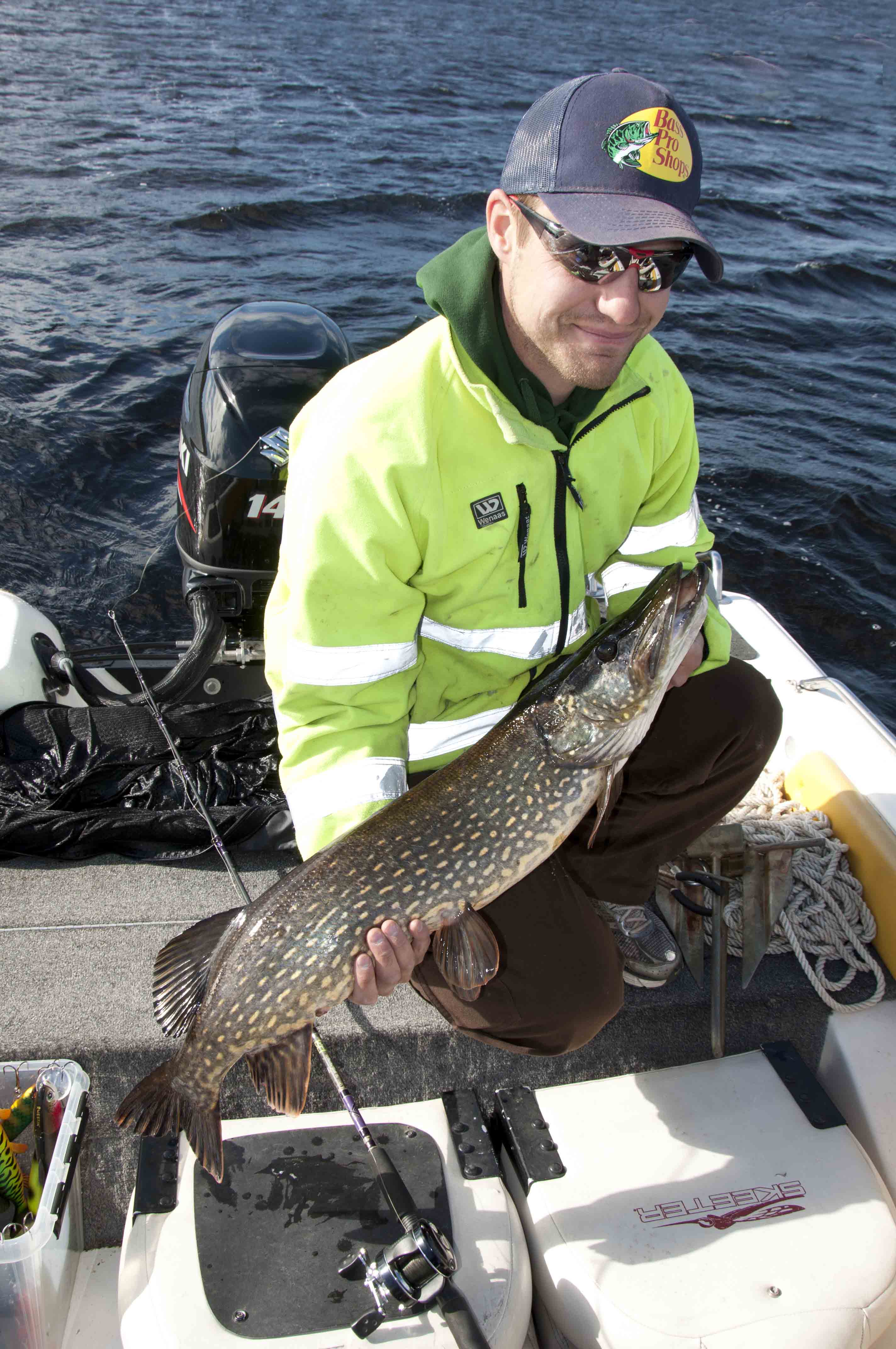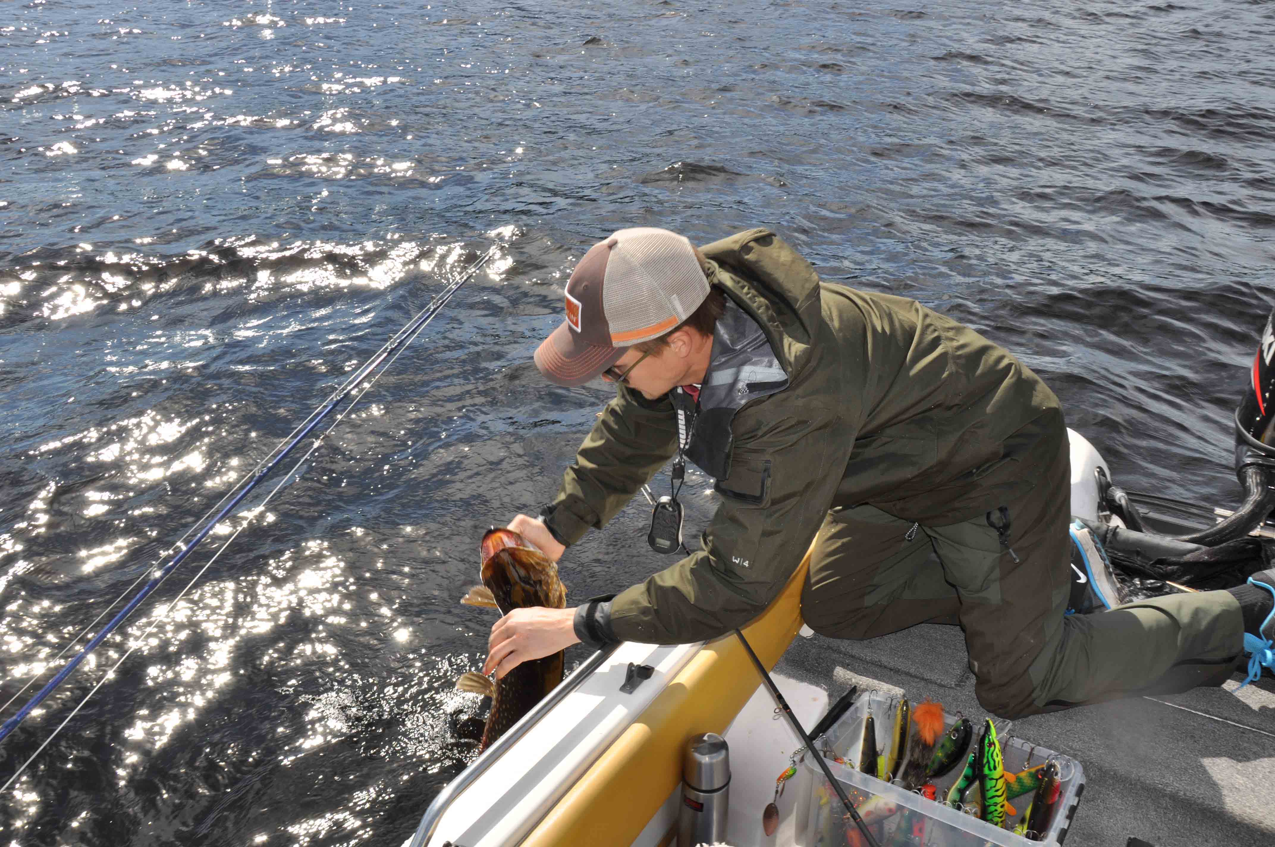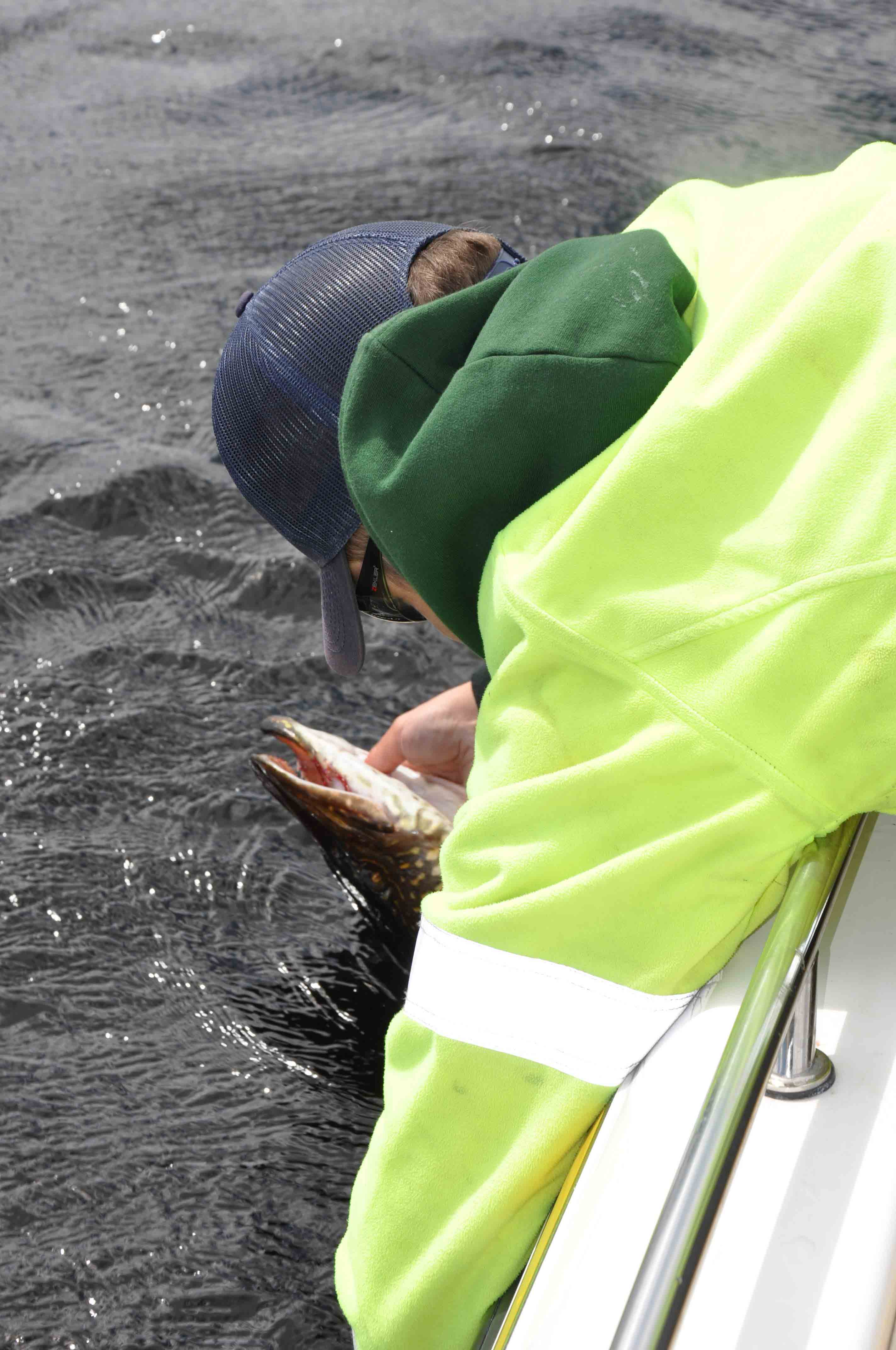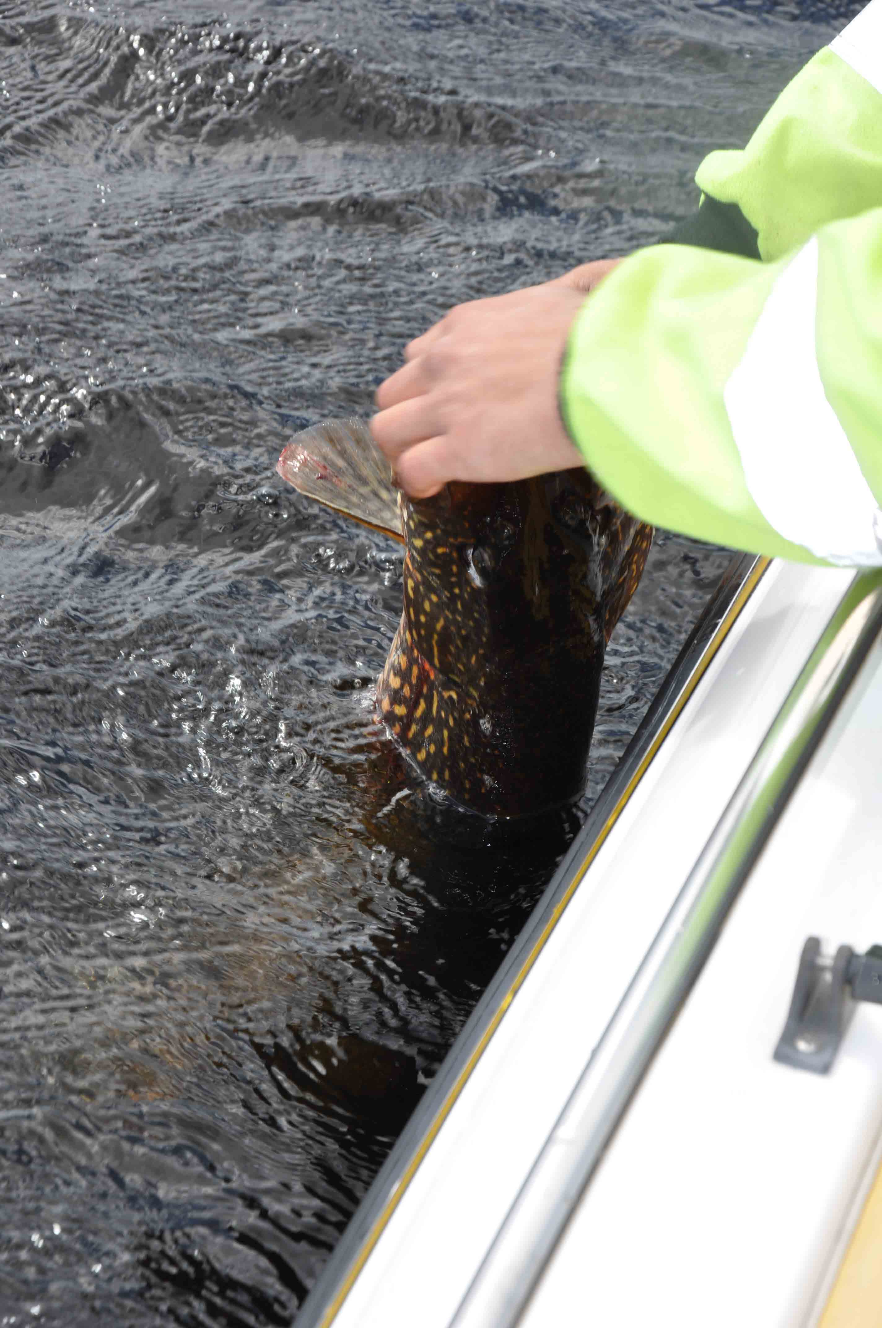 Alla gäddor behöver inte se hur insidan av båten ser ut. Här krokas den av direkt i vattnet.
