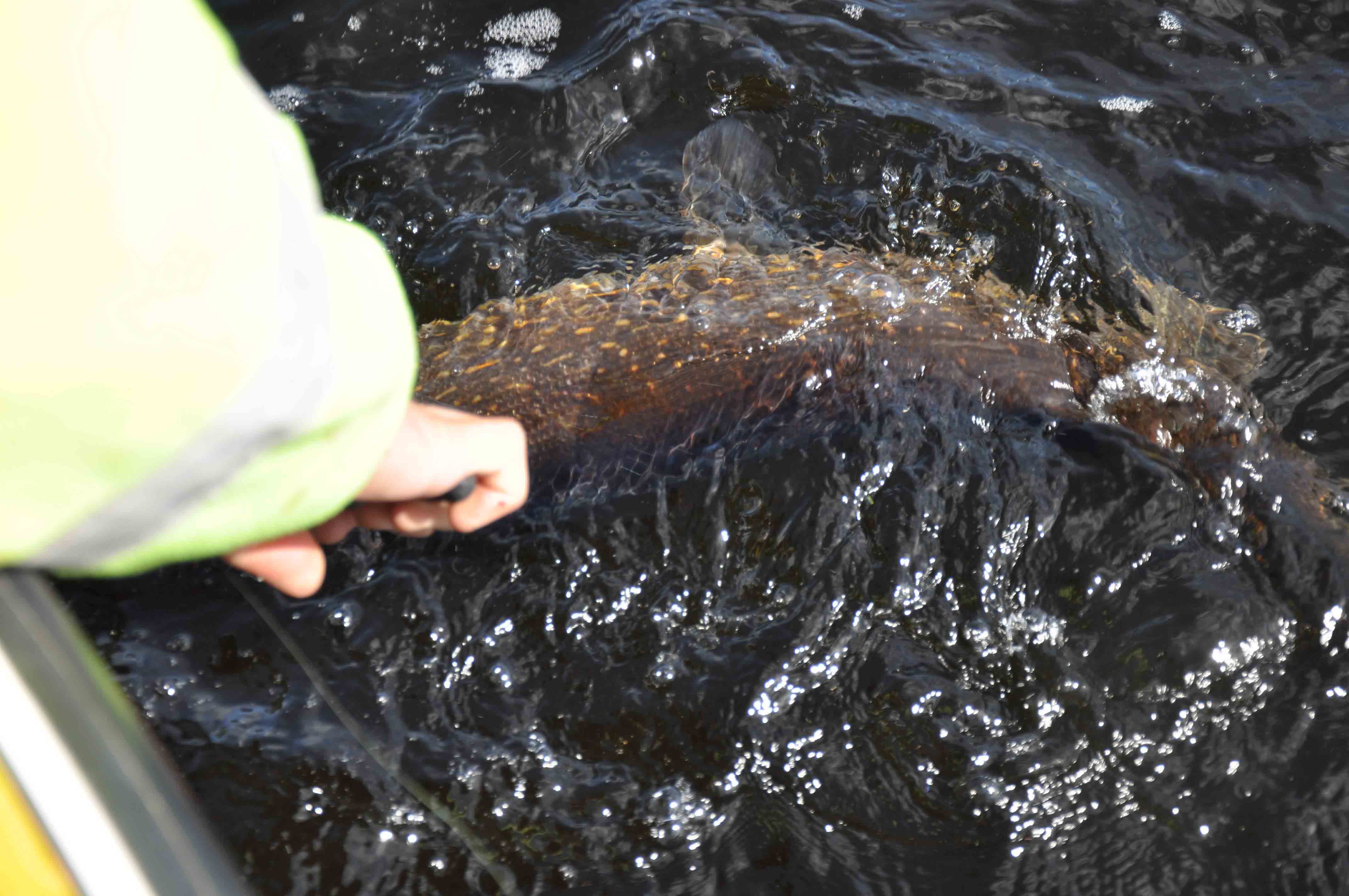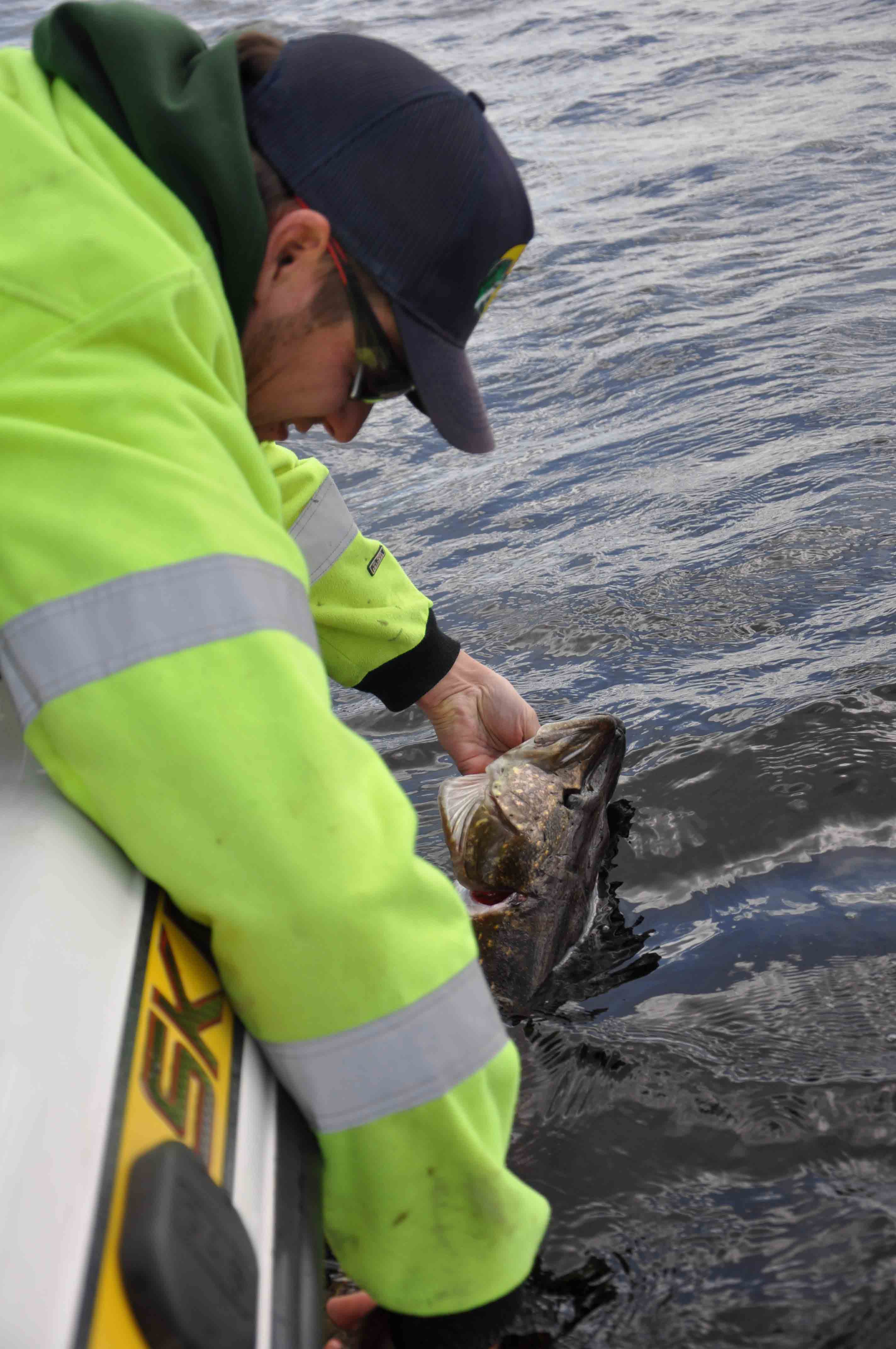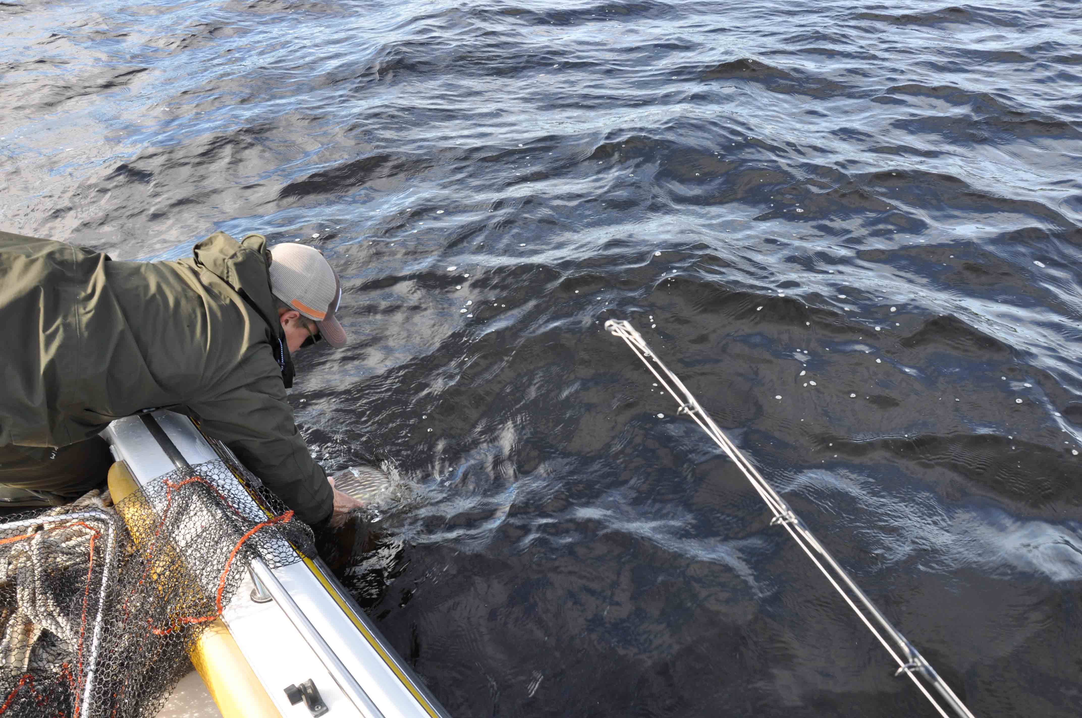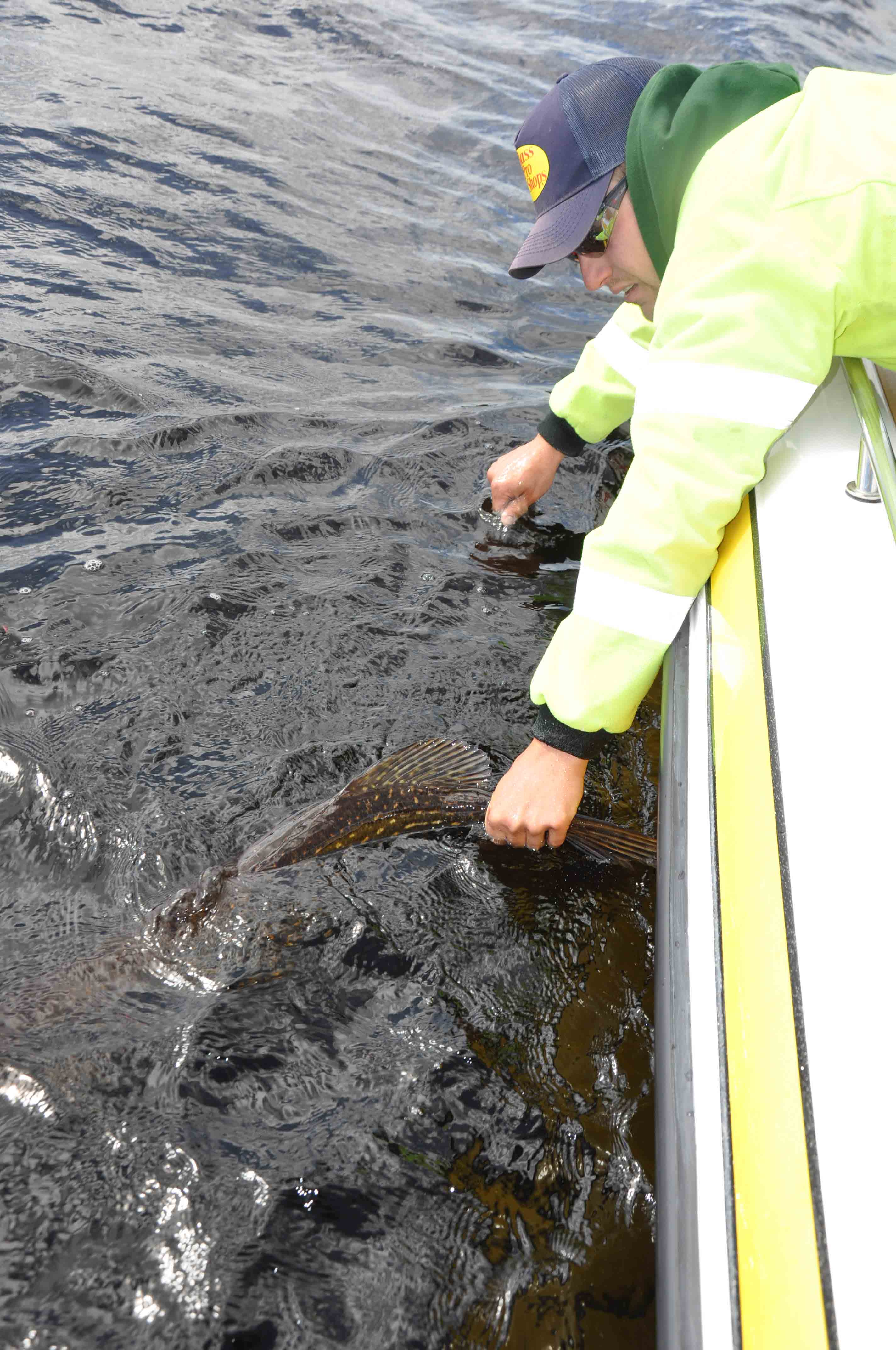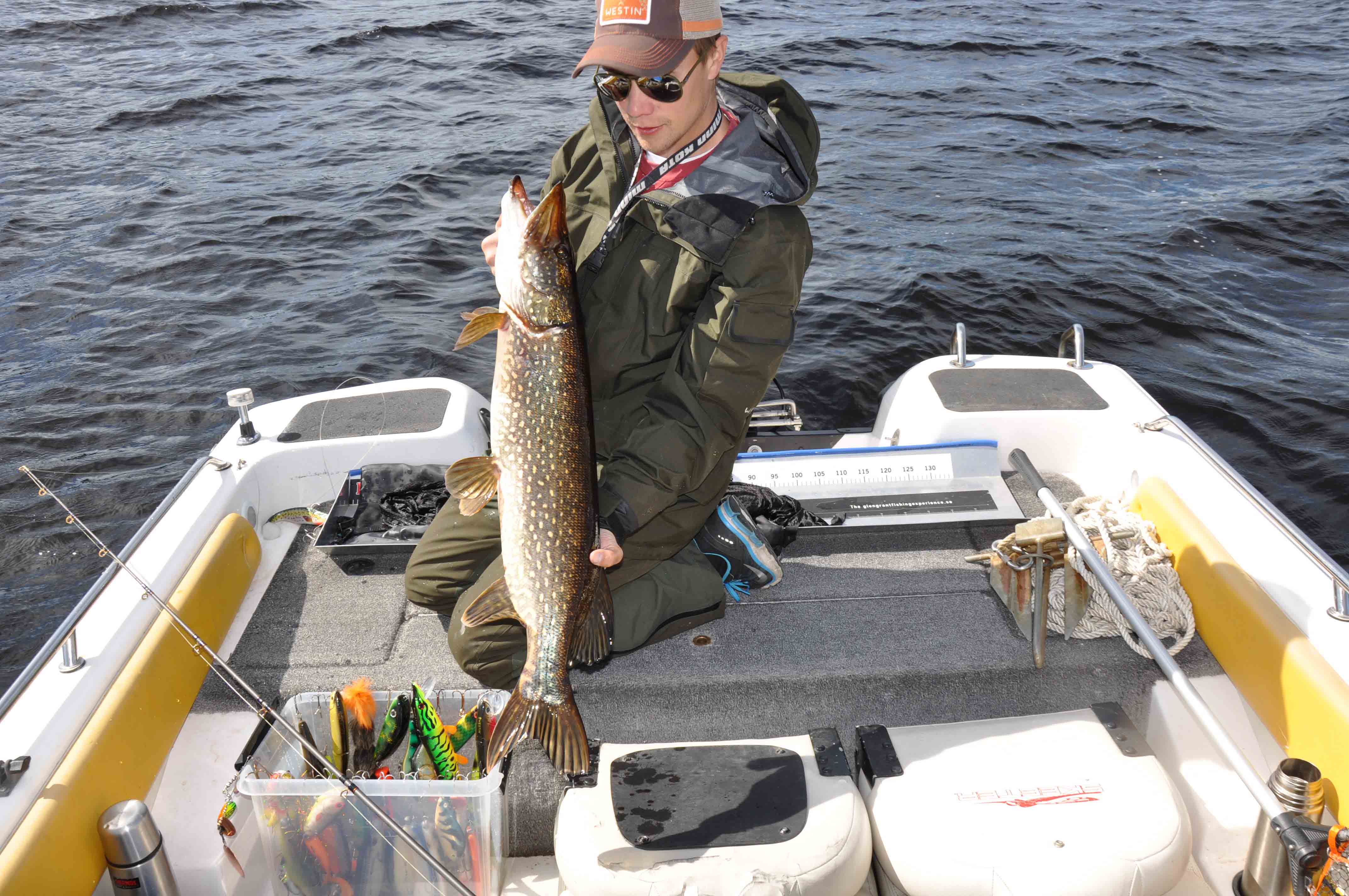 Alla gäddor behöver inte se hur insidan av båten ser ut. Här krokas den av direkt i vattnet.