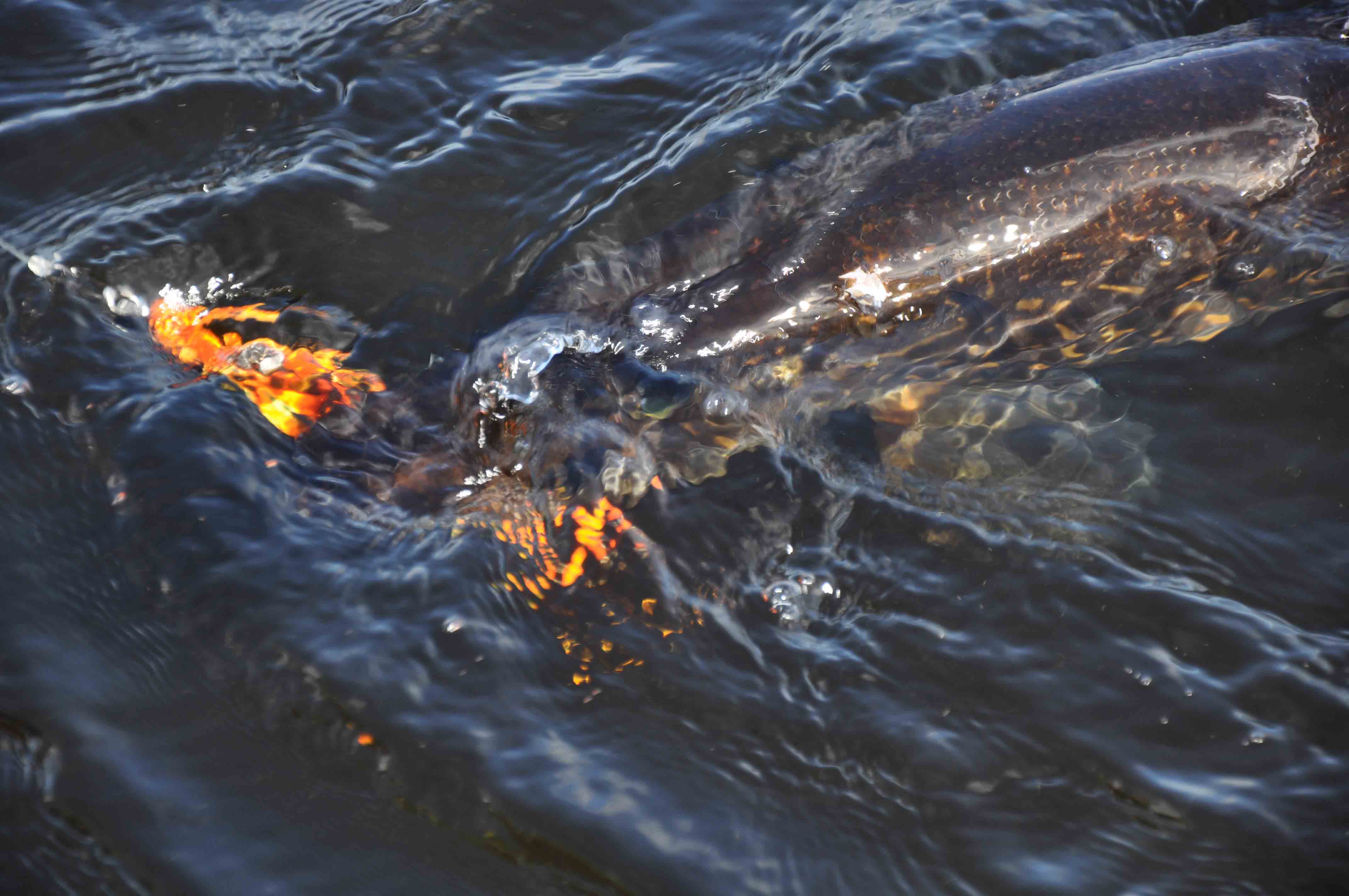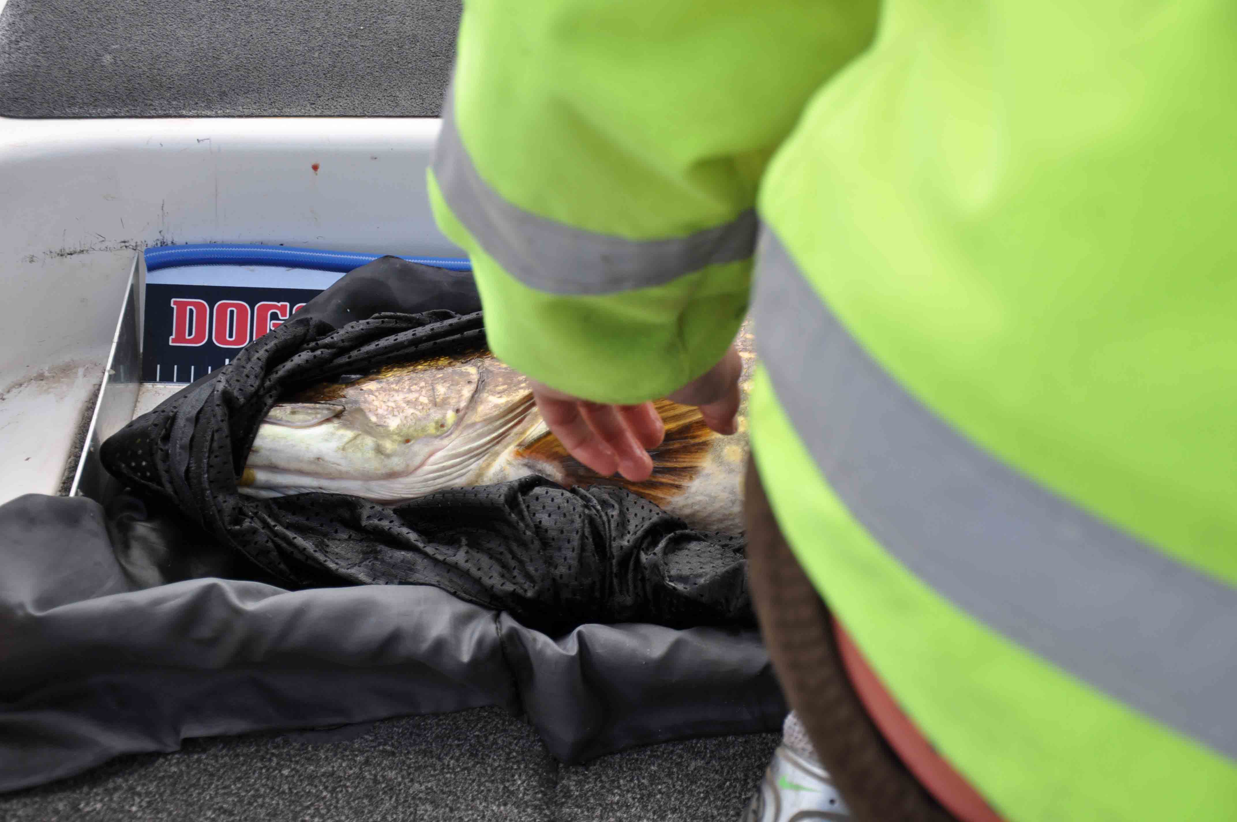 När den väl ligger i håven ser vi att hon har en överraskande buk och årets 4:e 10kg+ är ett faktum.
