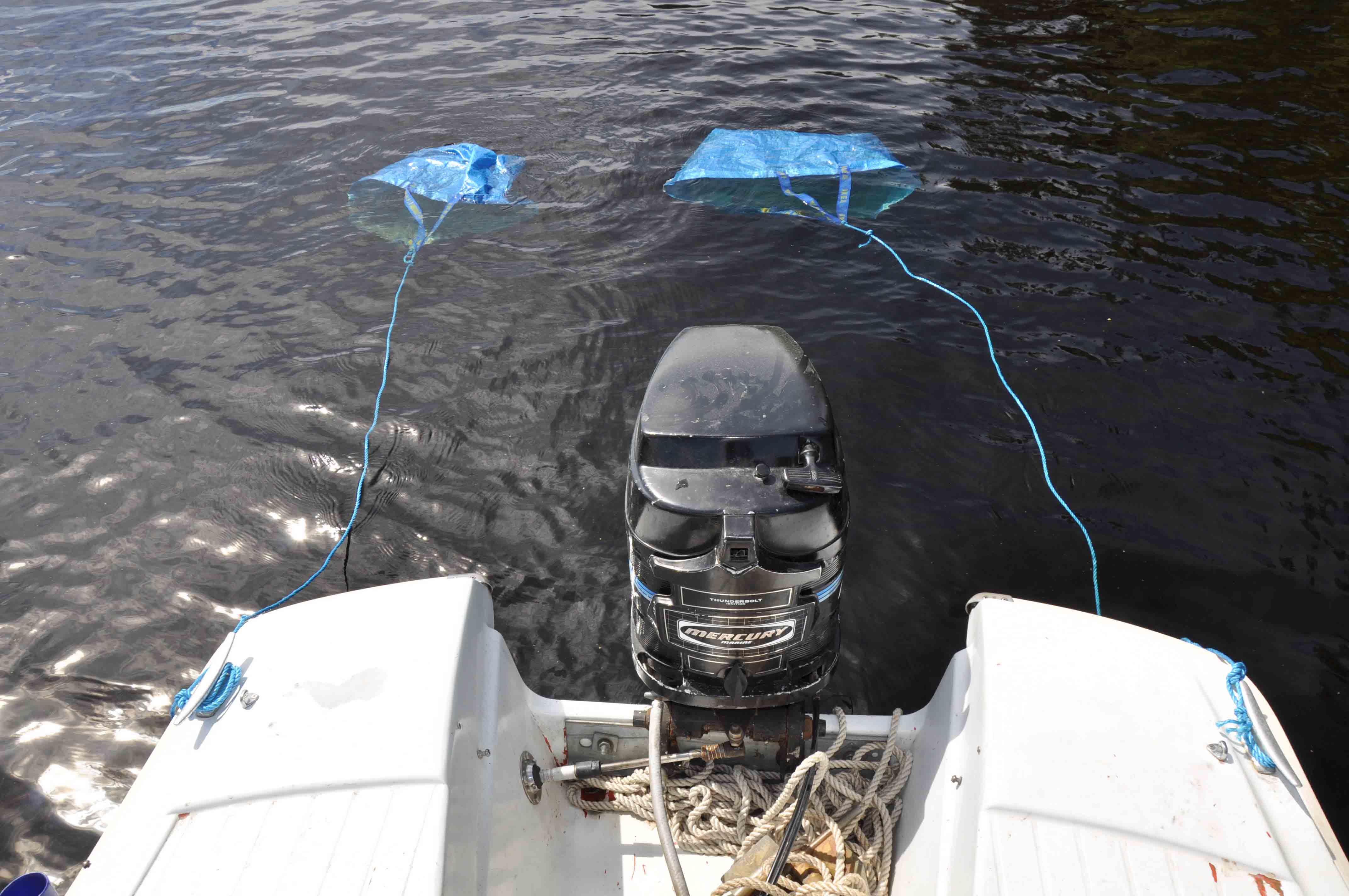 Ikeakassar måste vara en av de mest användbara prylarna inom fisket. I detta fall som drivankare.