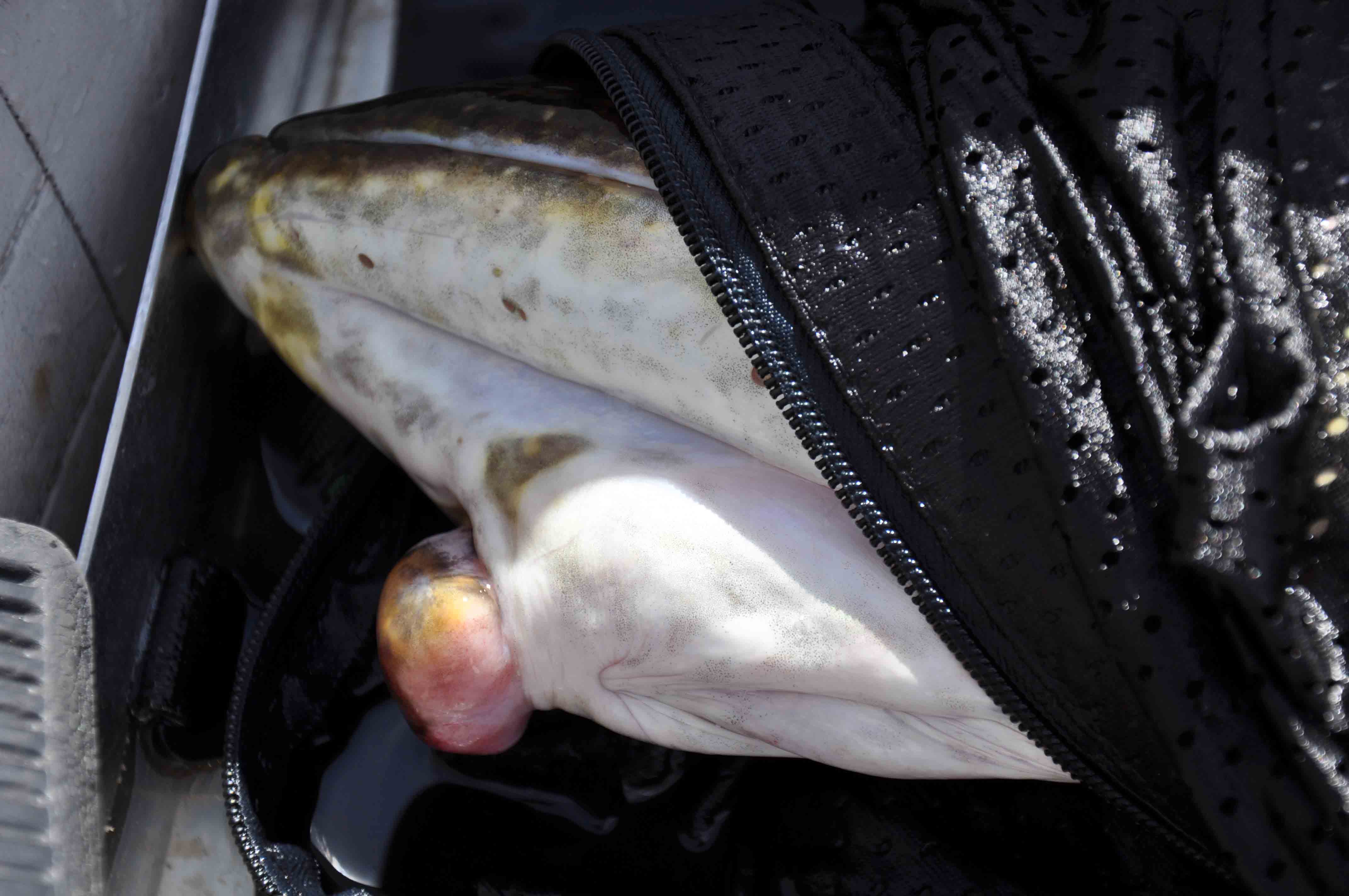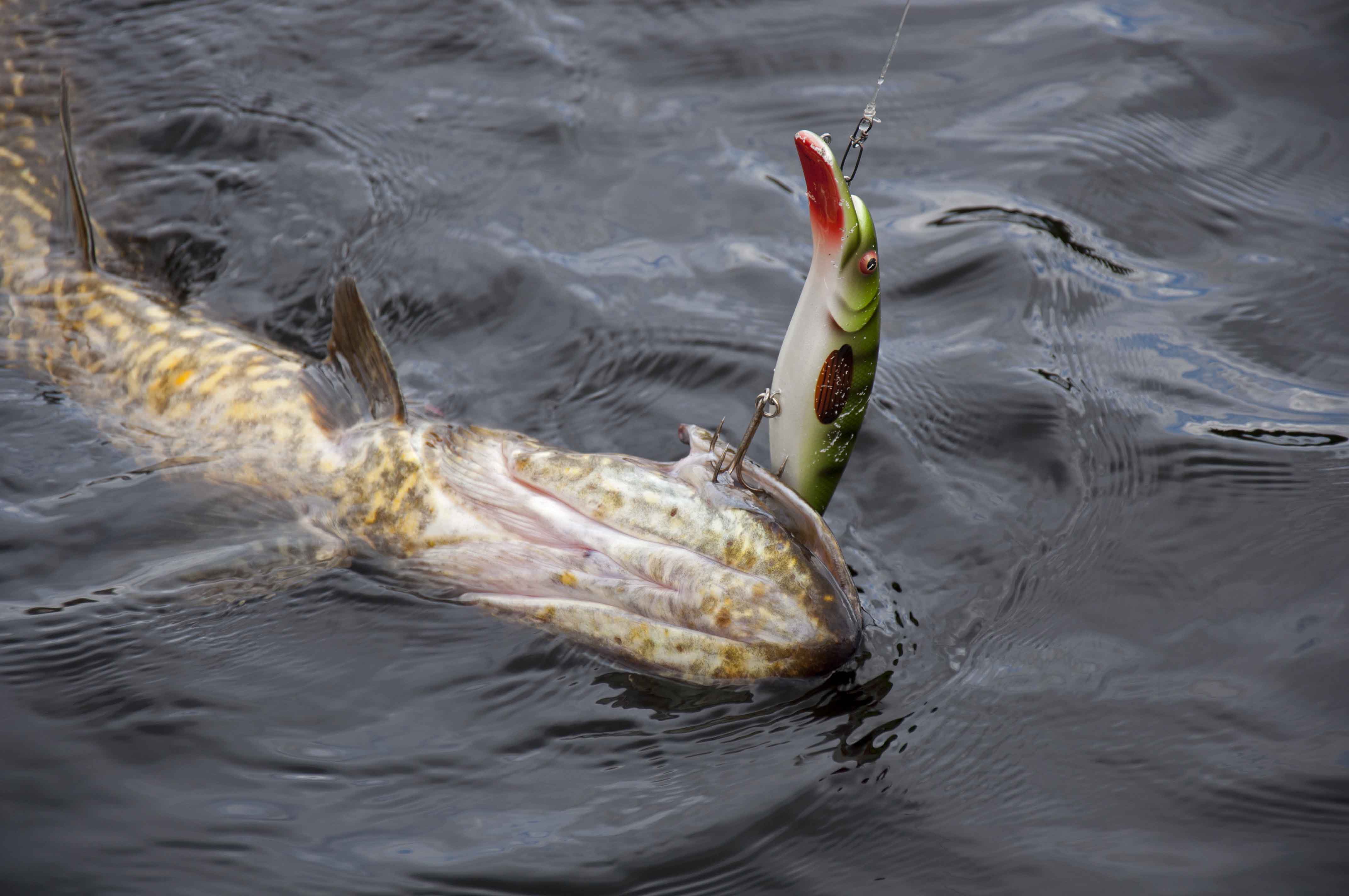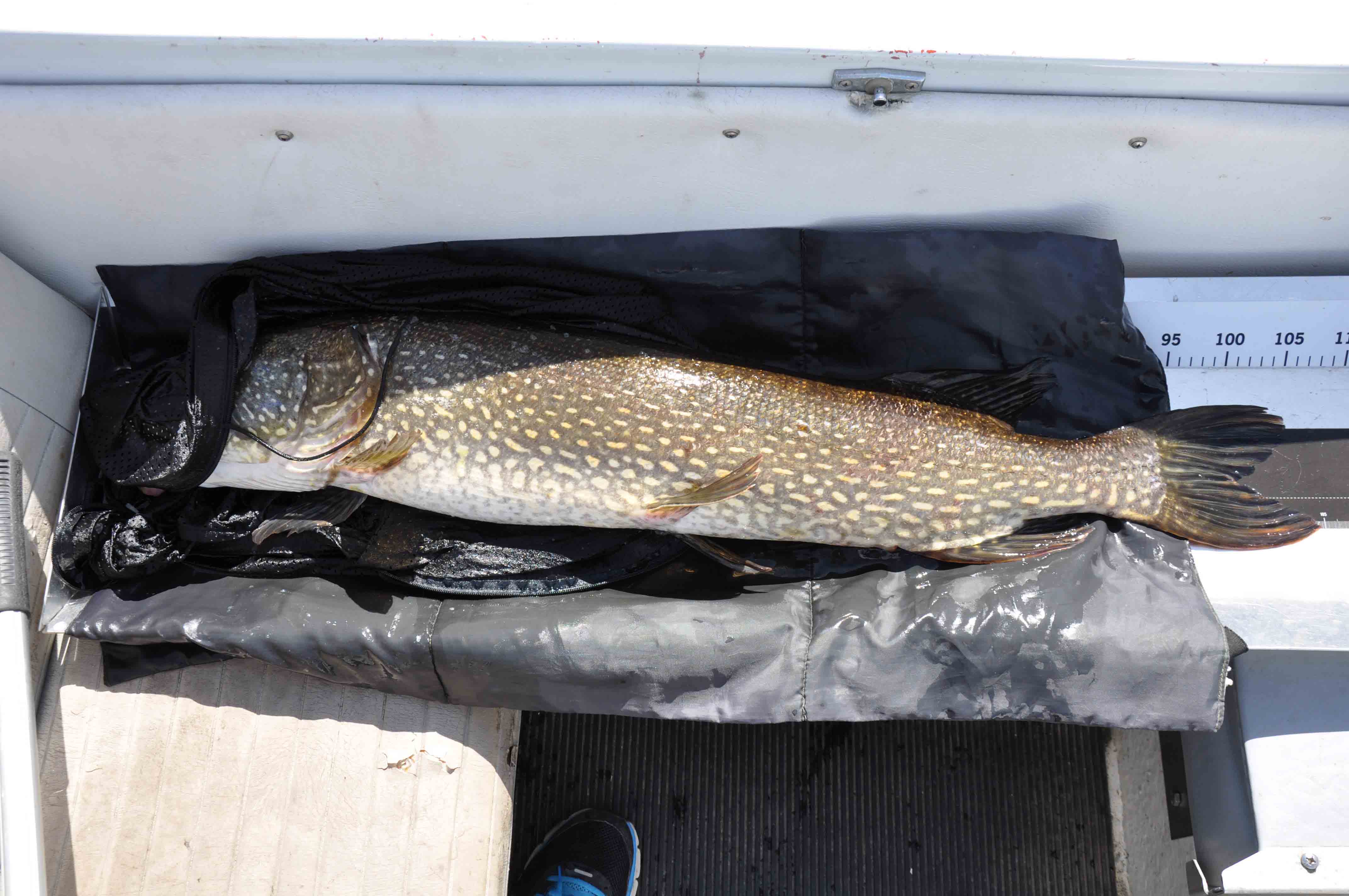 Denna gädda misstänker jag har blivit utsatt för huggkrok med tanke på bulan under käken…