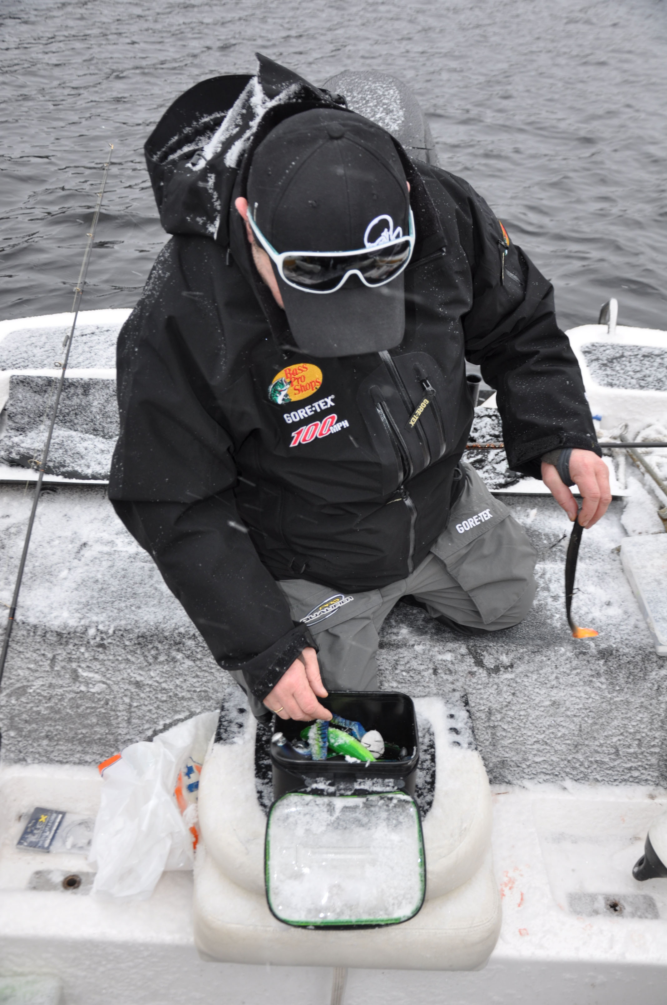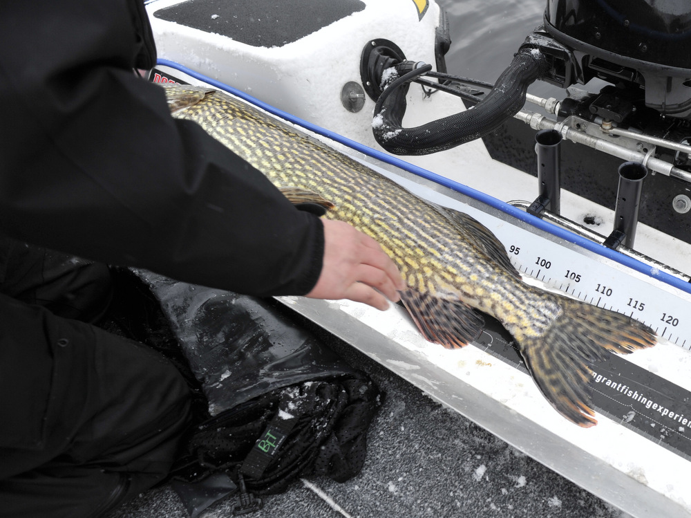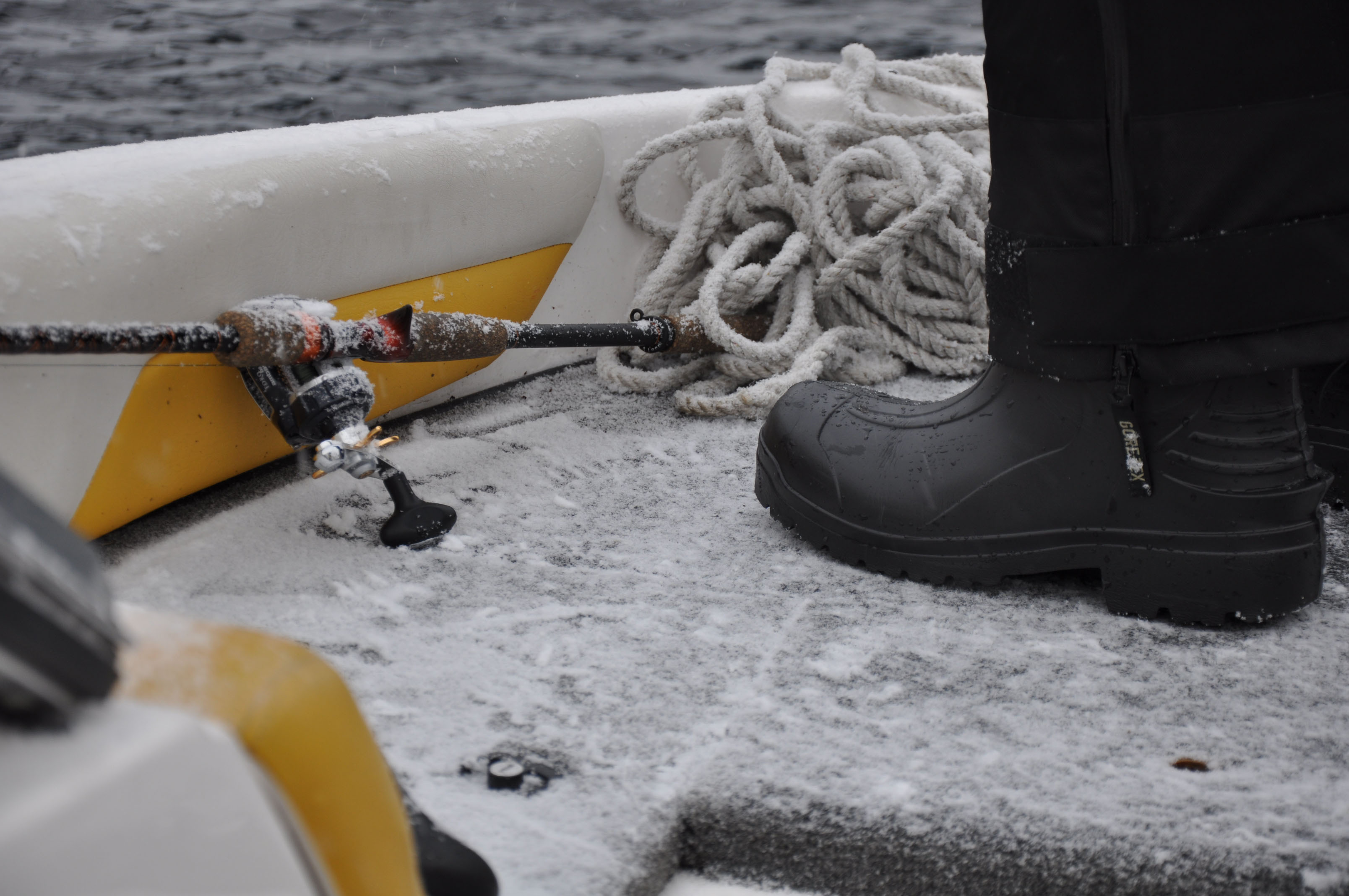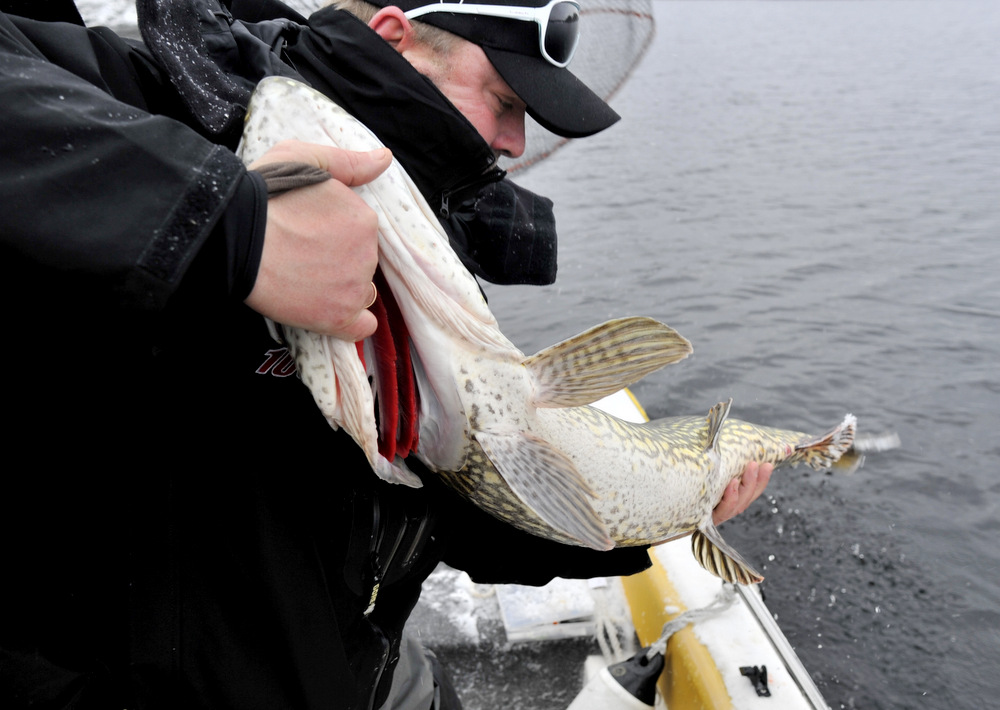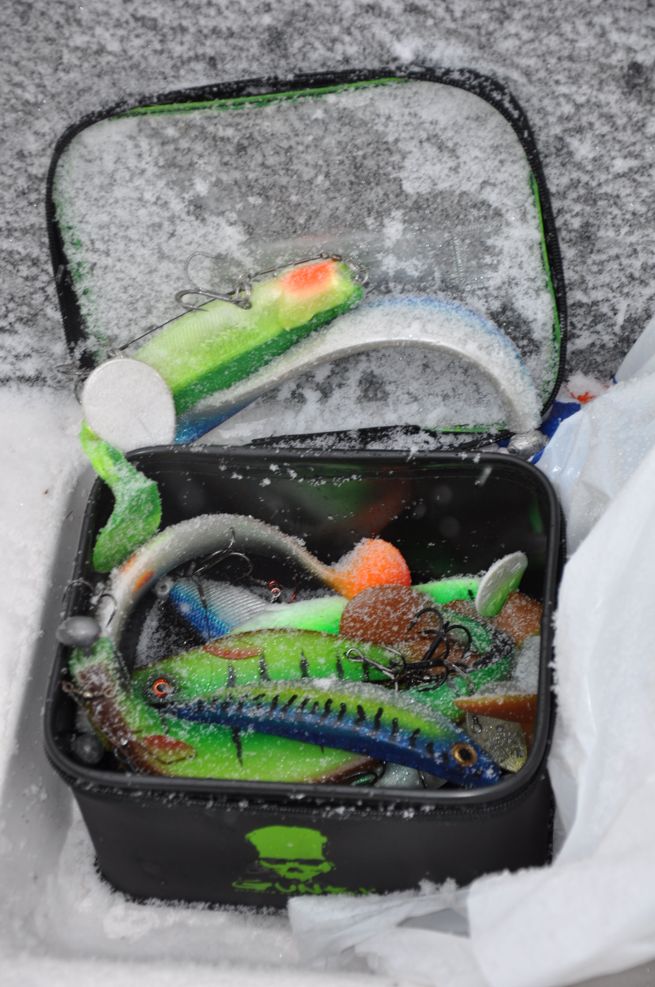 Bare det og få ut en båt i dette vannet var en bragd i seg sjøl. Når man ser på kalenderen og den viser januar, ja da kan man jo spørre seg selv hva man egentlig holder på med. Det finnes ikke mange som gidder og bry seg med og spinnfiske etter grønne slimete fisker fulle av tenner på denne årstiden. Iallfall ikke når man risikerer og vrake både båt og bil i forsøket på og sjøsette fiskefarkosten.. Det gikk bra denne gangen, men vi prøver ikke en gang til, selv om fangstene denne dagen helt klart frister til gjentagelse!