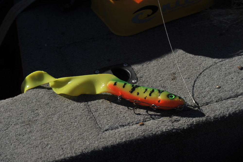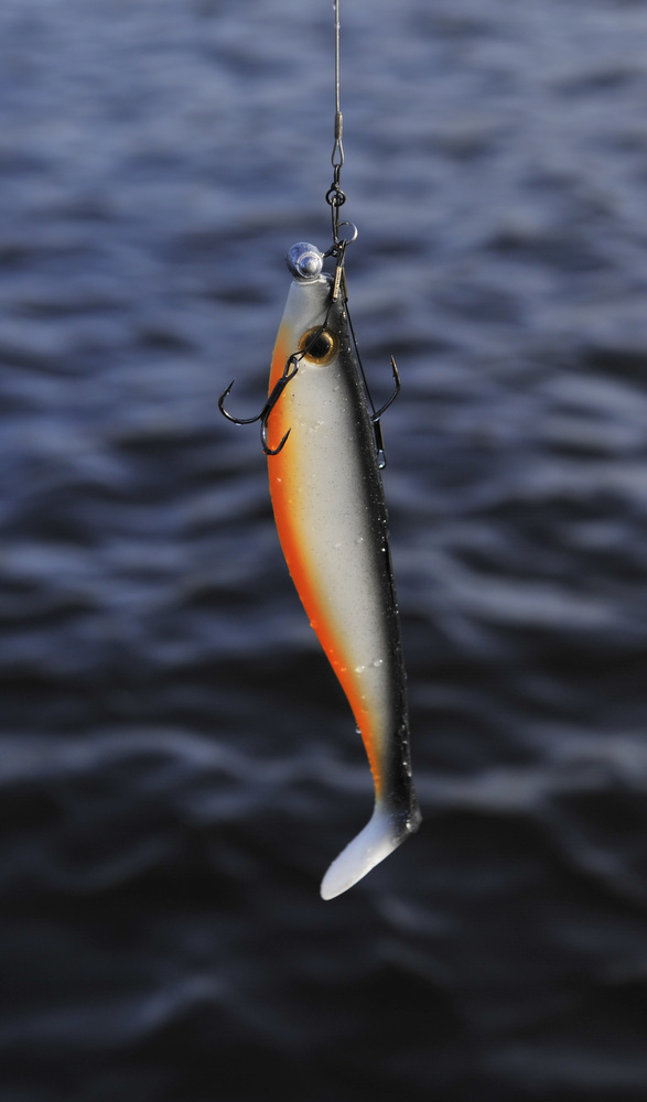 Hann fikk fire av de 6 fiskene vi klarte å lande. 3 på gummi og en på jerk. Phantom tail 6 » i fargen hot withfish