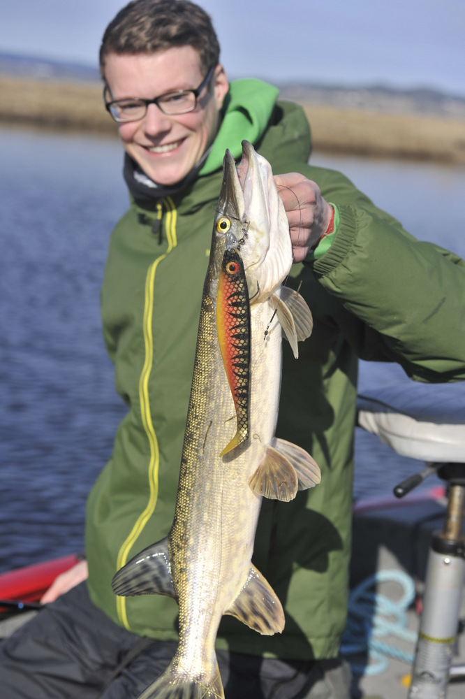 Det var Mathis som skulle få gleden av å levere dagens først. Tok i droppe. Pikewallis shadden trengs faktisk ikke å sveives inn smeller uansett hehehe. Gøy å se at PW shadden leverer og leverer. Og Mathis var også for nøyd da det var den tyske fargen som leverte.