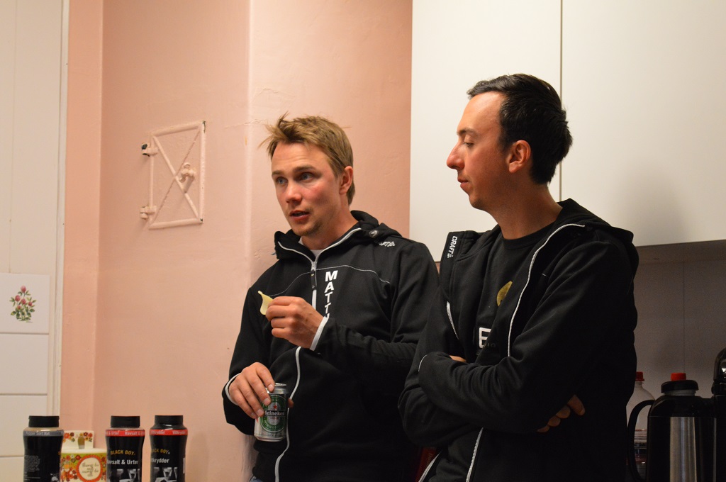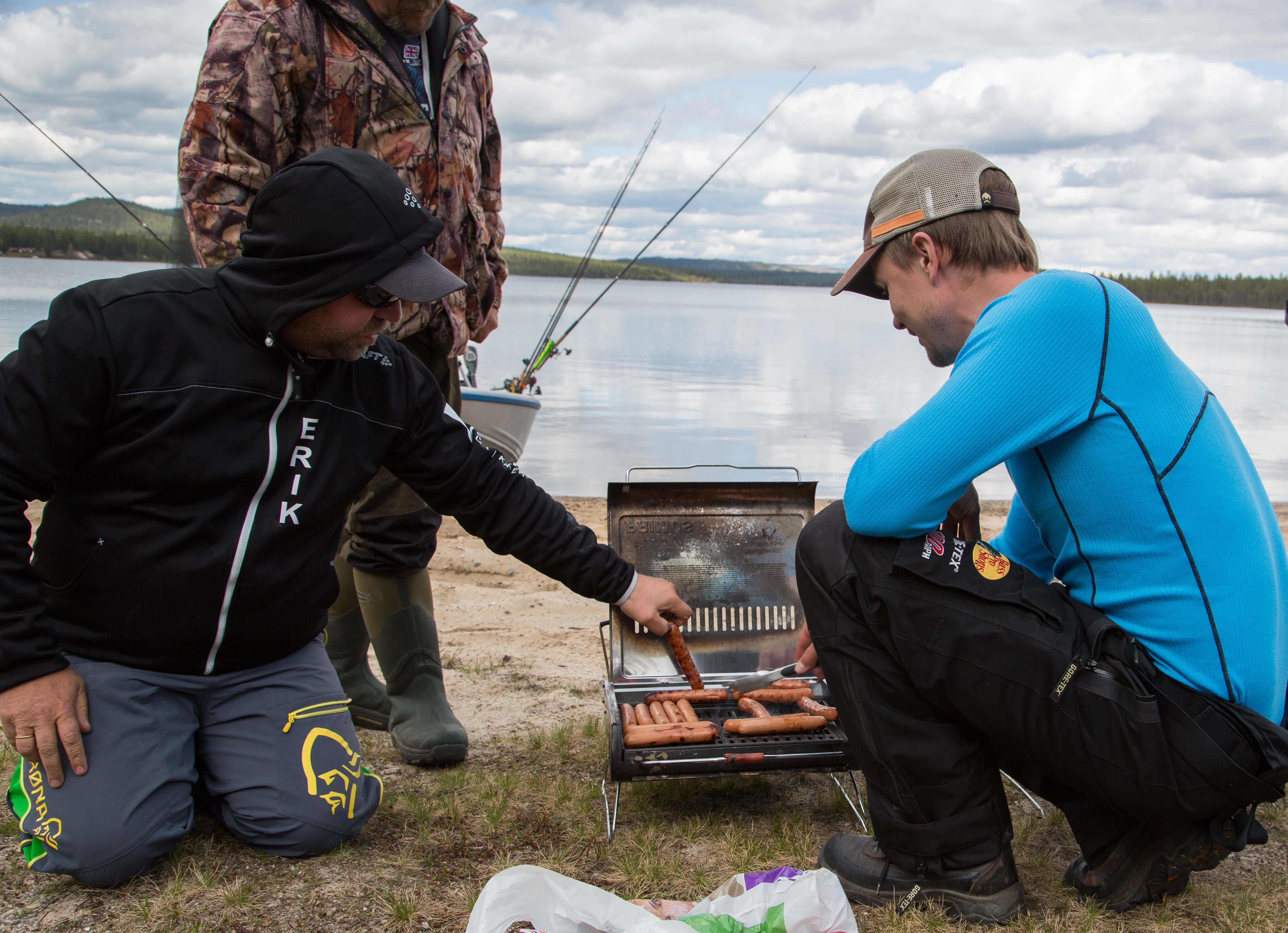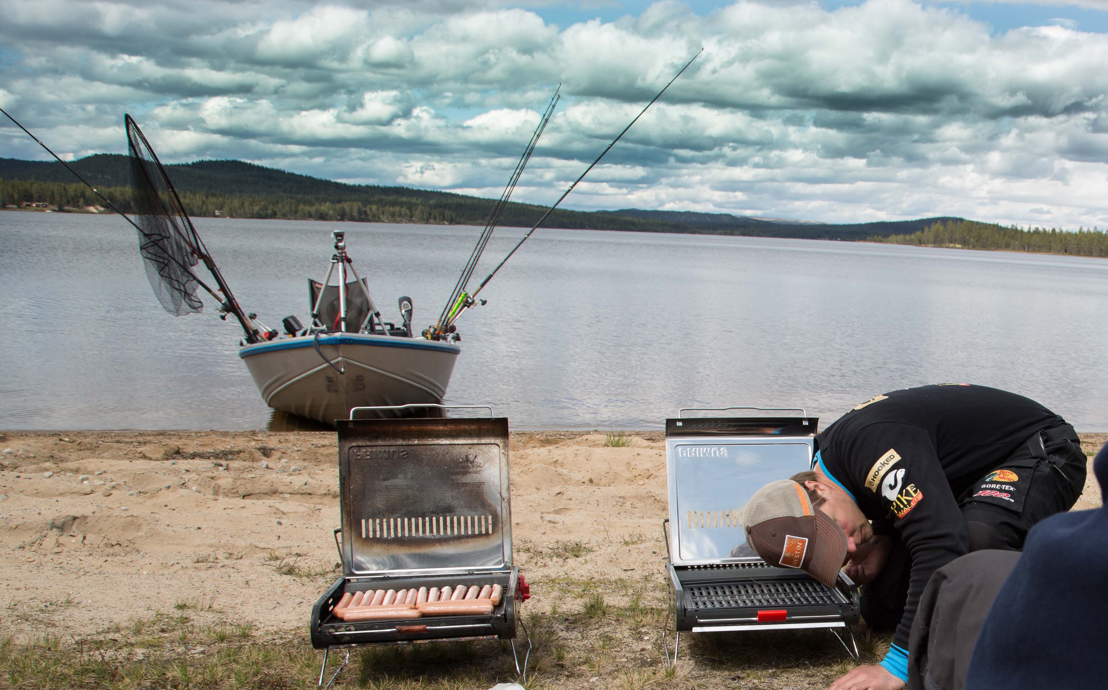 Matthias og Johan har med hver sin lille hendige gassgrill. Matthias som har fått husmor rollen i Team Pikewallis tar villig på seg jobben med grillingen..
