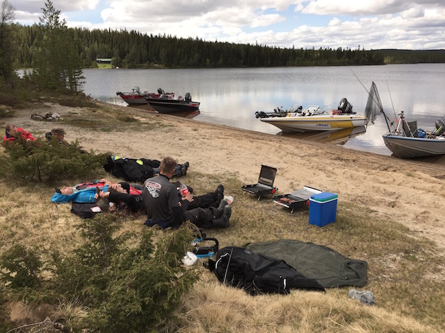 Etter en liten hvil i sola bærer det ut igjen.. Konkurranse innstinktene til folk synes tydelig hos enkelte.. Hvem har flest gjedder, hvem har størst gjedde.. Hvem blir kongen av Harsjøen denne helga… Sålangt hadde Erik flest og Roger størst.. (altså sånn vi er vant til og ha det og sånn det bør være)