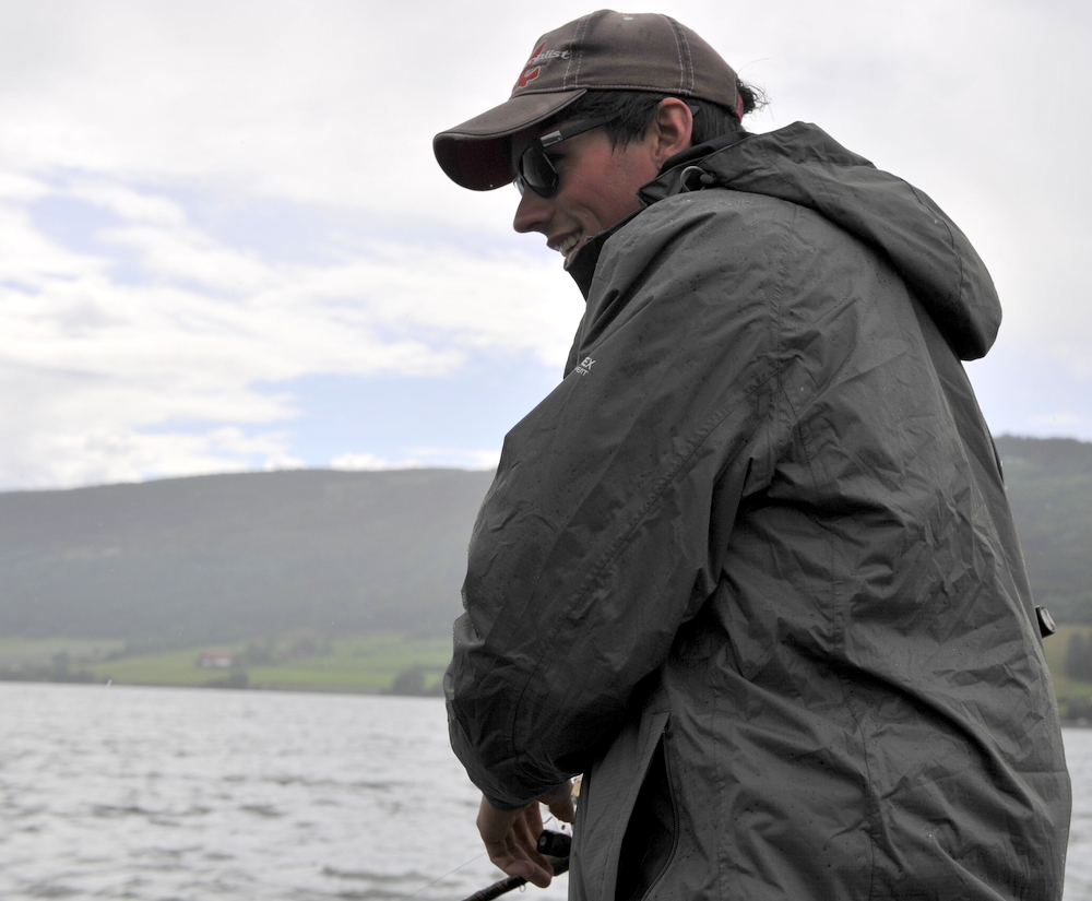 Torenbeek skulle få den første fisken. Og gutten ble glad han. I dette vannet så fighter alle gjeddene som de var 7-8 kg. Så Torebækkern ble nok litt overrasket når han fikk se den «lille» fisken.