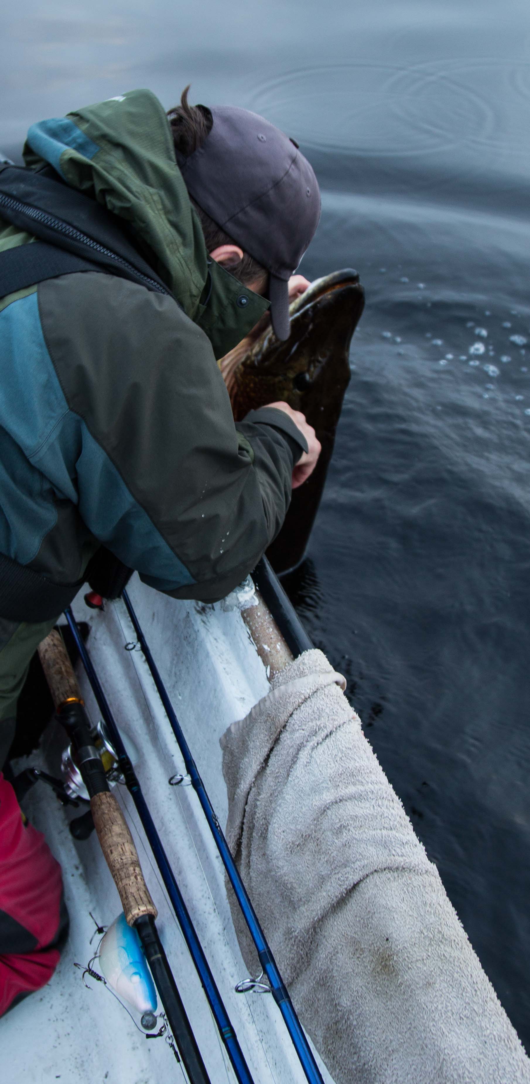 Vi började kasta av kanterna på en intressant undervattensås och efter några få kast får jag hugget som under lång tid gör sig påmint i korsryggen! Den här gäddan var verkligen ute efter att döda ”Poundern”.