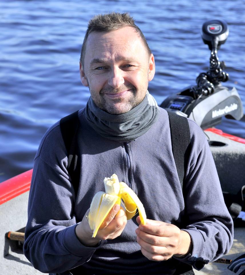 Da Olsen dro frem en banan skjønte vi at dette kunne bli en slow fiskedag. Vi prøvde å forklare gutten at dette måtte han kaste uti, man kan ikke ha banan i båten. Ståle kunne ikke forstå dette, men han gjorde som vi sa kvittet seg med bananen, trodde han. Han spiste den for f****, ikke bare en han spiste to for gutten hadde jo tatt med seg et par. Etter å ha spist begge to konkluderte Olsen med at de var borte. BORTE?? Men fader du har de jo på veg ned i magen, vi har forsatt to bananer i båten, bare at nå er de i din kropp. Det var nesten så jeg og Michael kastet Olsen ut i vannet, men etter å ha tenkt oss litt om så ville vel turen bli bedre med en Olsen i båten + litt bananer.