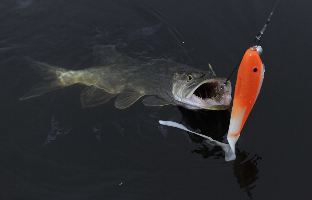 Fikk også testet Gigang snackbaits i dag som er 28cm lang og 140gram tung. Og jammen var det ikke en liten pike som prøvde seg. Gikk veldig fint i vannet. (kommer pooldemo)