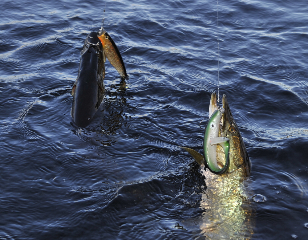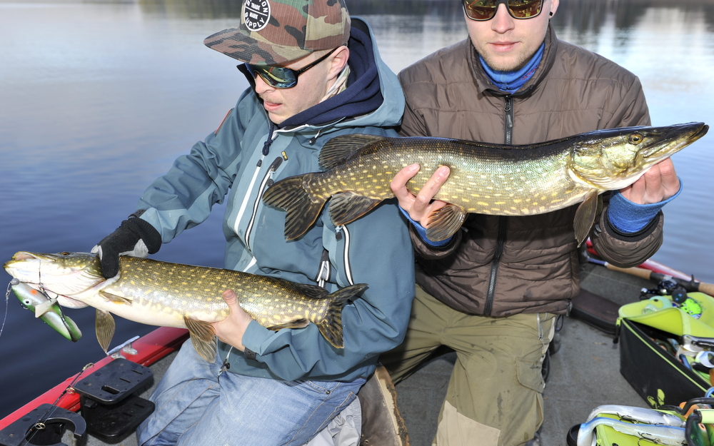 To Moelvs karer med hver sin flotte gjedde, begge med god kondisjon tatt på mcrubber og dexter.