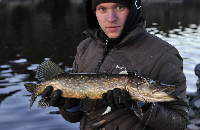 Fredrick vippet opp tre gjedder, ikke av de med fisk får han. To på den tidligere nevnte bankok og en på Tomcat fra Eastfield Lure.