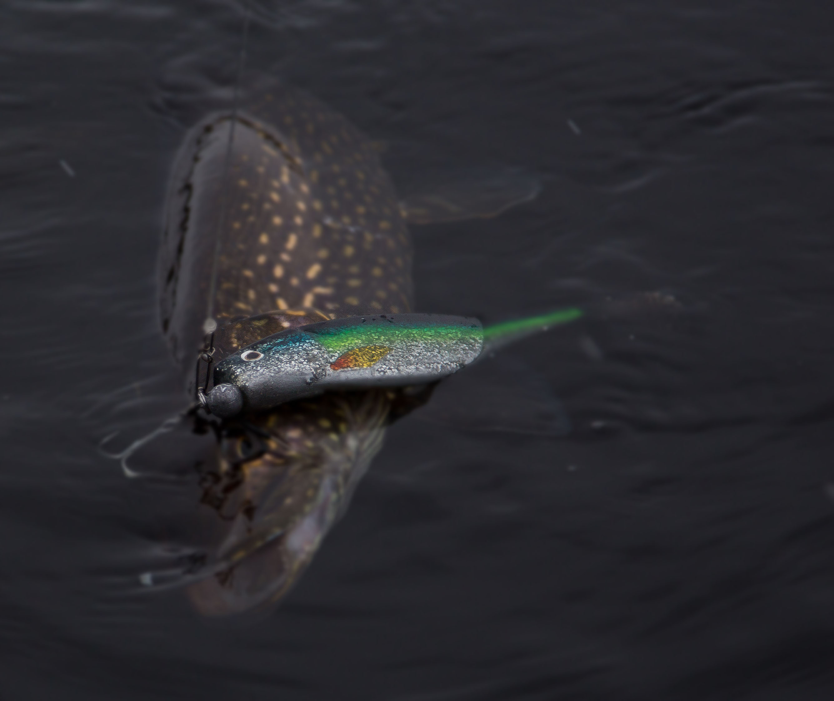 Ett par timmar senare skymmer det och jag byter till en Dexter Shad i färgen Blue Ayu som nästan alltid levererar fisk under rådande förhållanden. Det behövs bara några få kast så kommer nästa hugg, ”f….n, den här känns också stor!” Drillningen är mindre dramatisk och vi ser att även den här är en fin fisk.