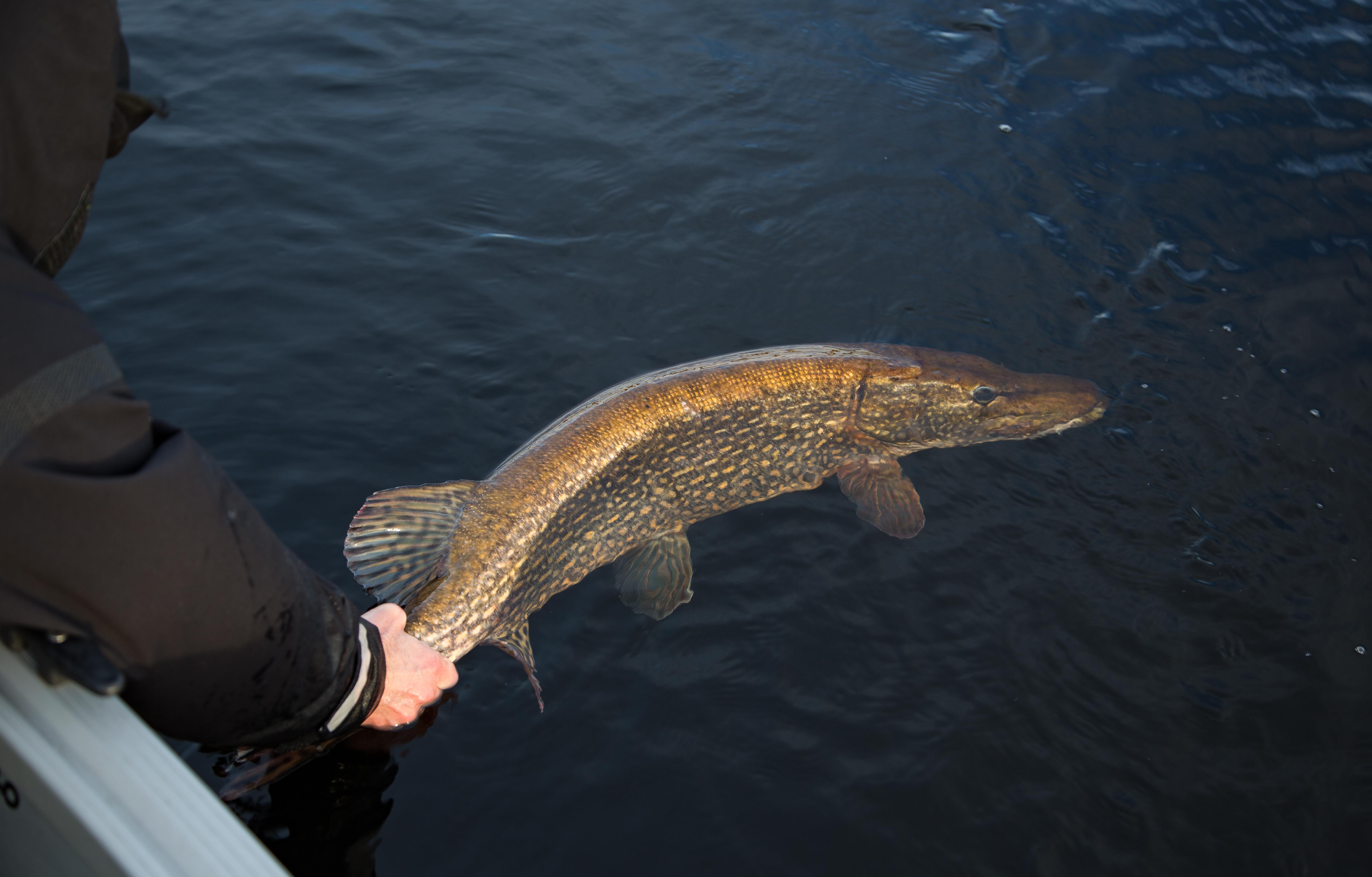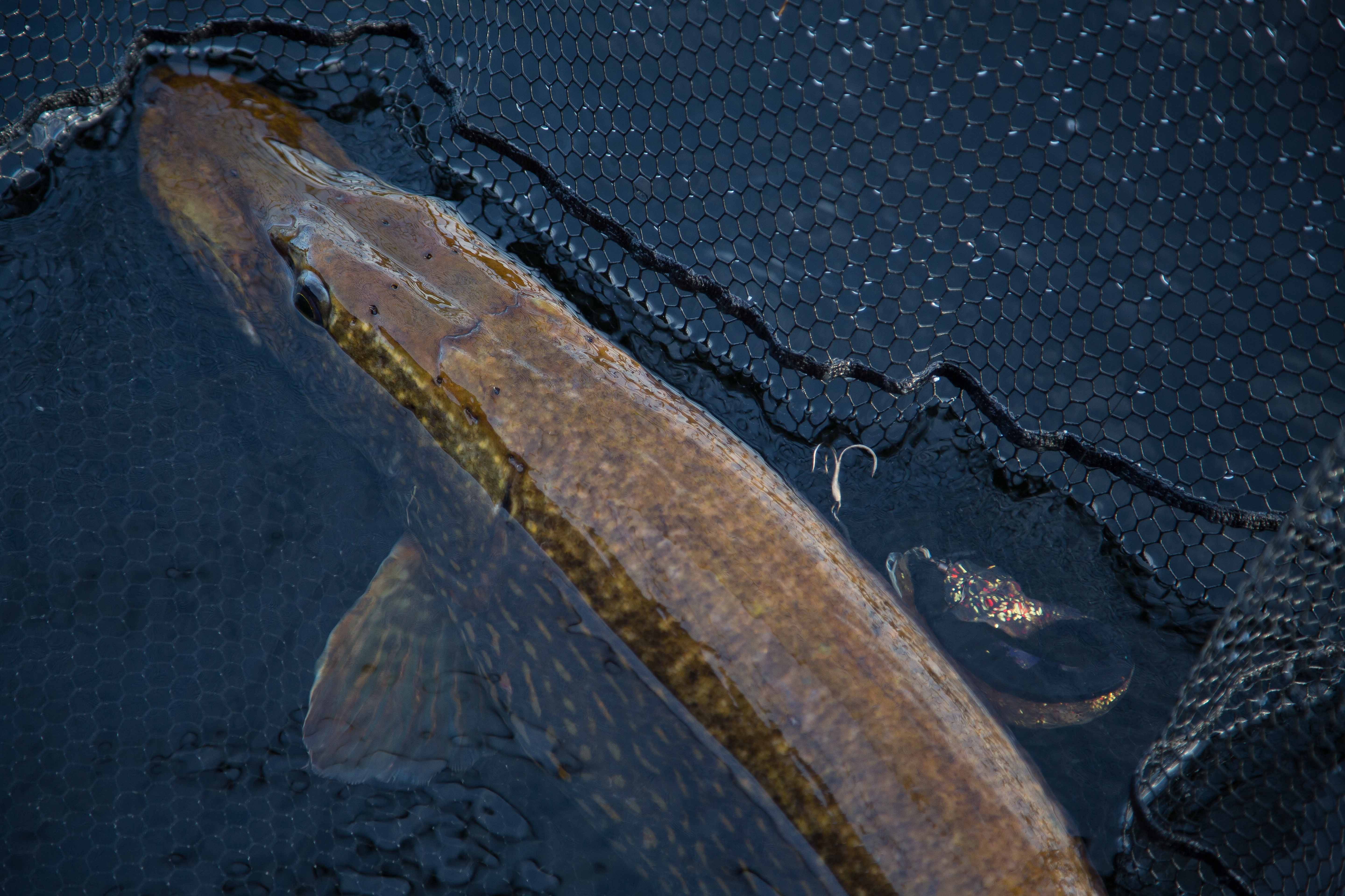 Strax gungar det tungt i spöt, ”den här är stor…” sa jag till Stampe som greppar håven som en tvättäkta Muskieguide.