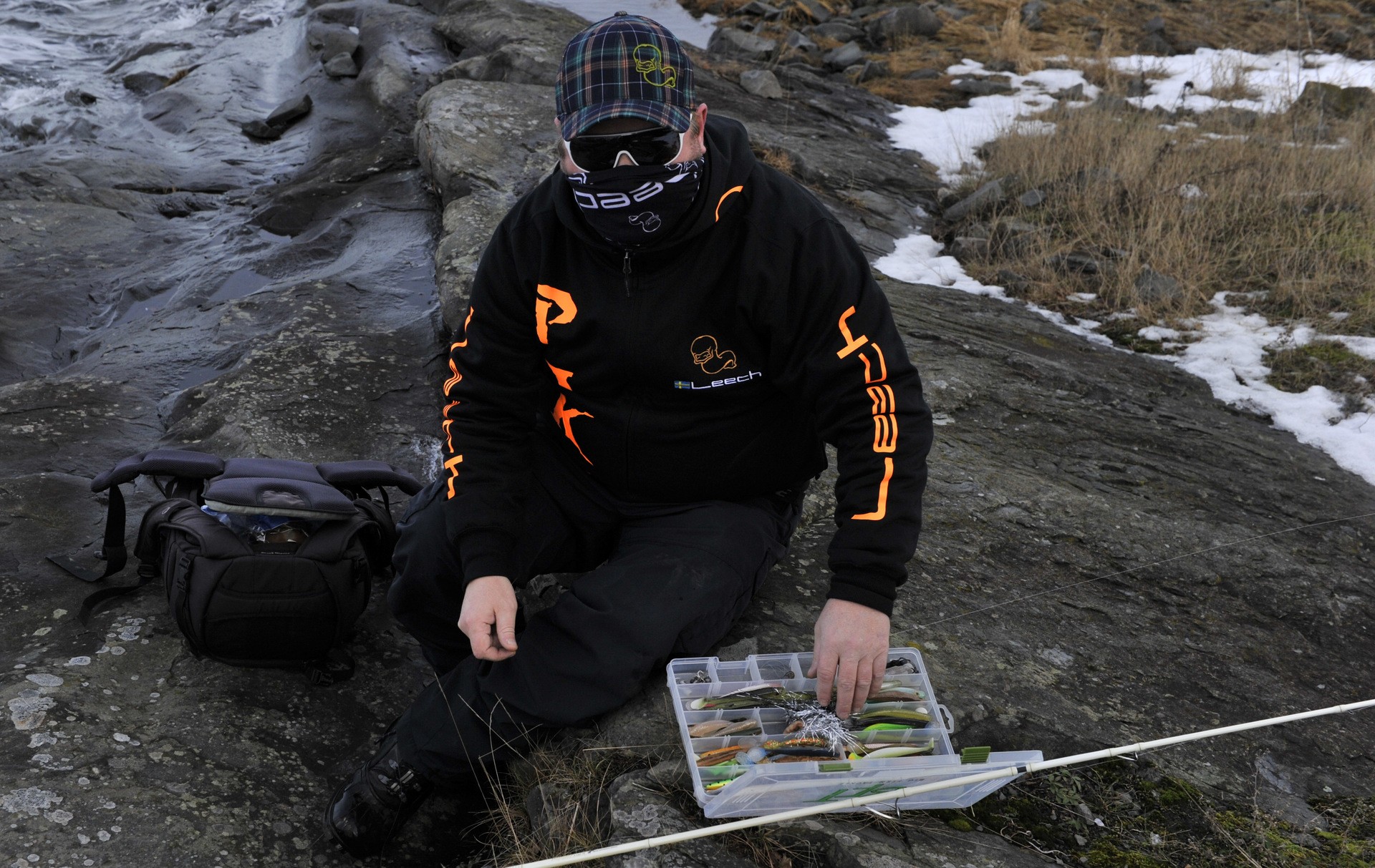 Vinden var ikke så ille som yr.no skulle ha det til, ihvertfall ikke  når vi gikk ut av bilen for å rigge å gjøre oss klare, men det skulle vise seg at det var en liten mini Tor i område etterhvert.  Men vi gikk med bestemte skritt mot område vi skulle fiske av med trua om en bra dag. Og i starten gikk det veldig bra, men det skulle vise seg jo lengre sør vi kom jo verre ble vinden. Det gjorde at strekke vi kunne fiske på ble relativt kort.