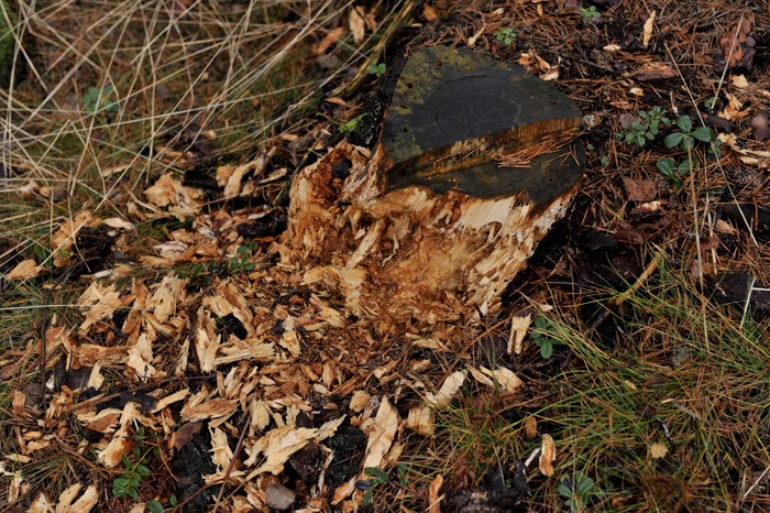 Her har han revet et tre overende og etter på gnaget seg igjennom stubben.