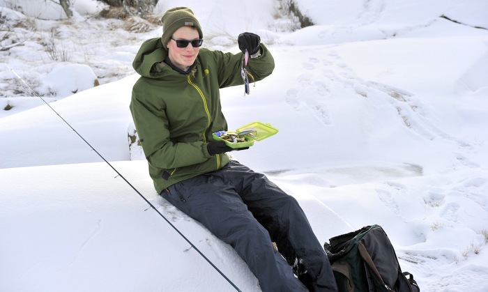 Thomas Molander Hansen en meget trivelig kar som faktisk kjører i fartgrensen, noe som gjør livet mye enklere for følgebilen som var meg og Mathis i dette tilfellet. For det skal litt til å finne frem i et mylder av små grusveger i denne landsdelen. Som skrevet en meget trivelig kar som fisker SØ med flue. I tillegg har han en Tracker og da vet man jo at det er en kar med sans for gosaker. Det er gøy å se på fluefiskerne, det er noe edelt over det hele der de smyger seg frem langs vannkanten ( for å ikke eksponerer seg for mye), vader litt ut for å så kaste av i vifteform. Mens en slukpelle som meg og Mathis stiller oss på de høyeste punktene nær vannet for å garantert skremme evnetullet ørreter som står nære land. Fluefiskeren må rett og slett være mer forsiktig etter som kastelengden ikke er like lang som for en slukfisker. men der har vi nok noe å lære Mathis, selv om vi kaster lenger, så er det like mye fisk nære land for oss også, helt til vi skremmer de bort da.