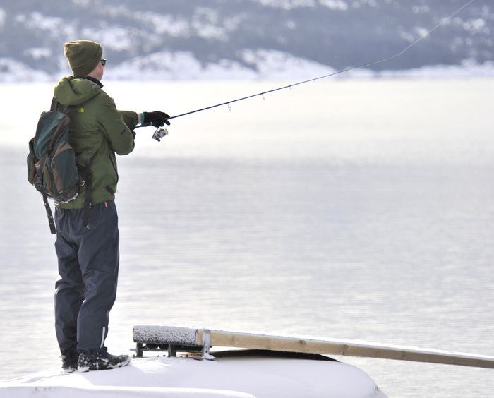 Mathis hadde ikke fisket siden oktober og var riktig så ivrige i dag, så ivrig at han var borte et par timer på en liten halvøy vi skulle fiske av. Helt hva han holdt på med vet jeg ikke, kanskje han måtte på do eller noe.