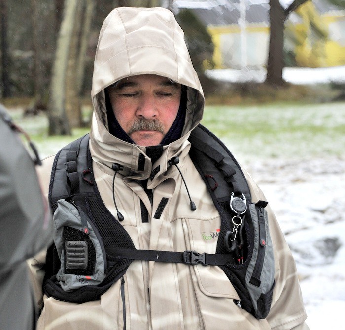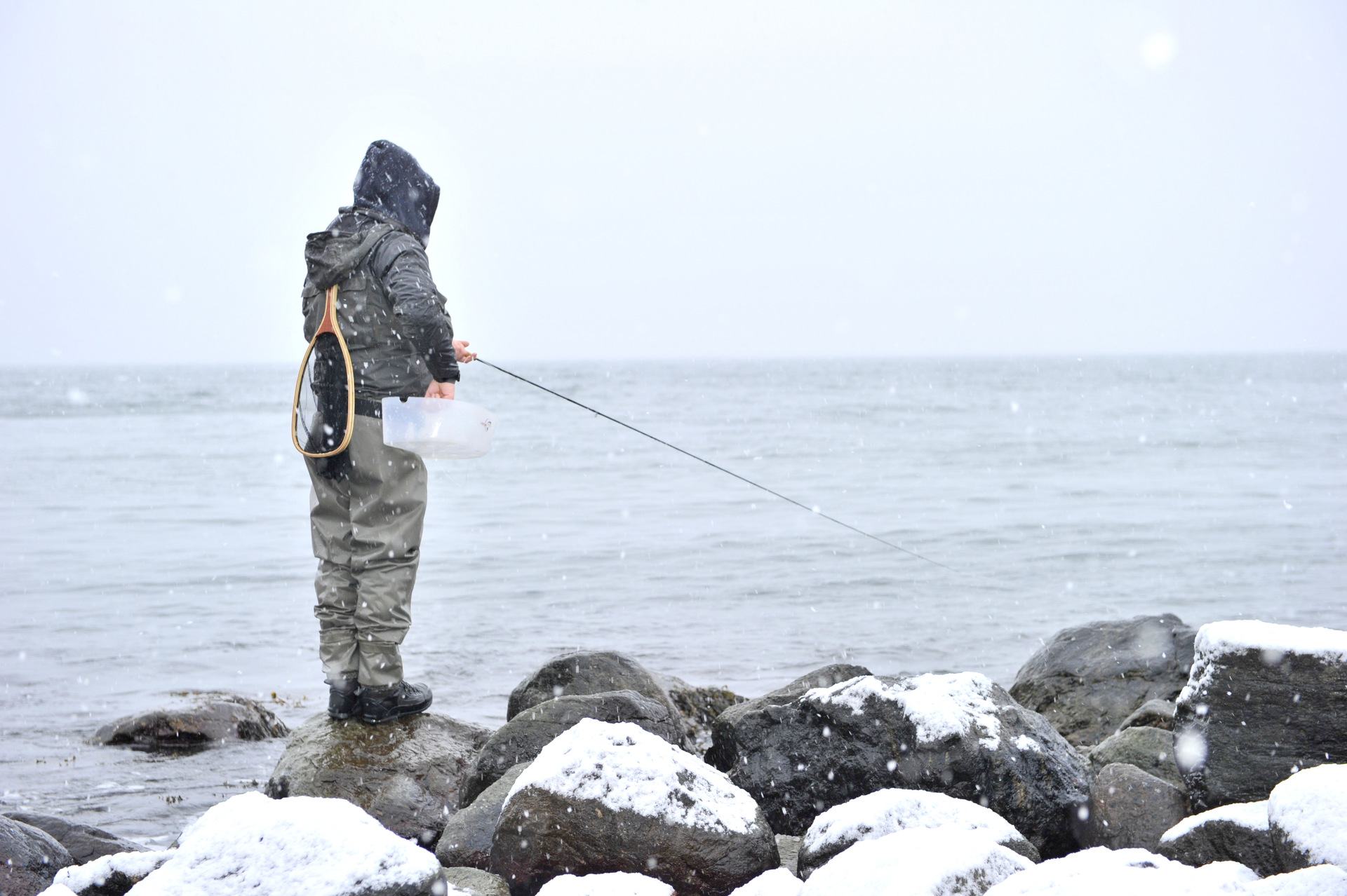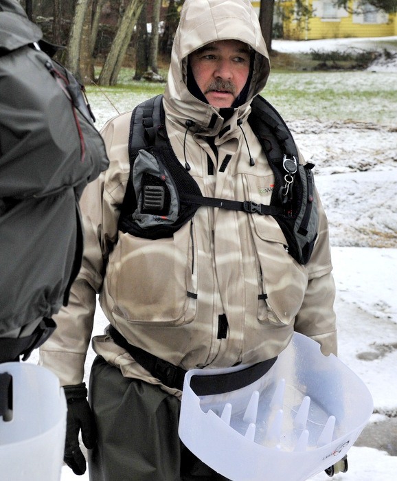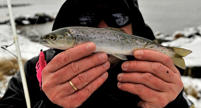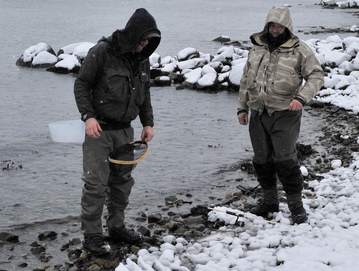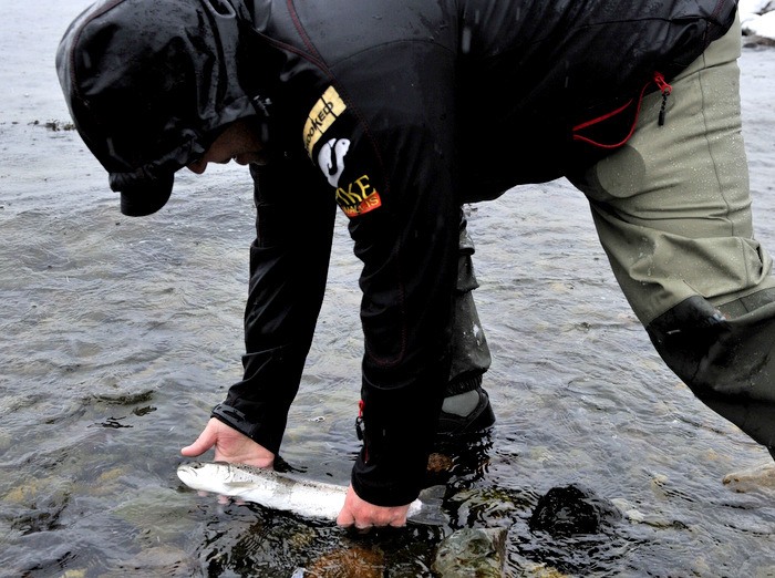 været var en lørdag verdig, det snødde neden i fra og opp og det blåste i fra alle kanter, og da mener jeg fra alle kanter. Det måtte være en liten risikosport å fiske med flue slik som været vær.