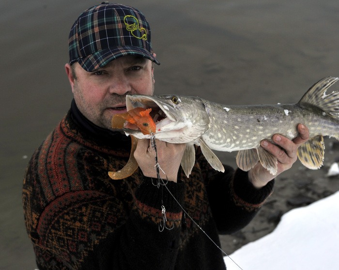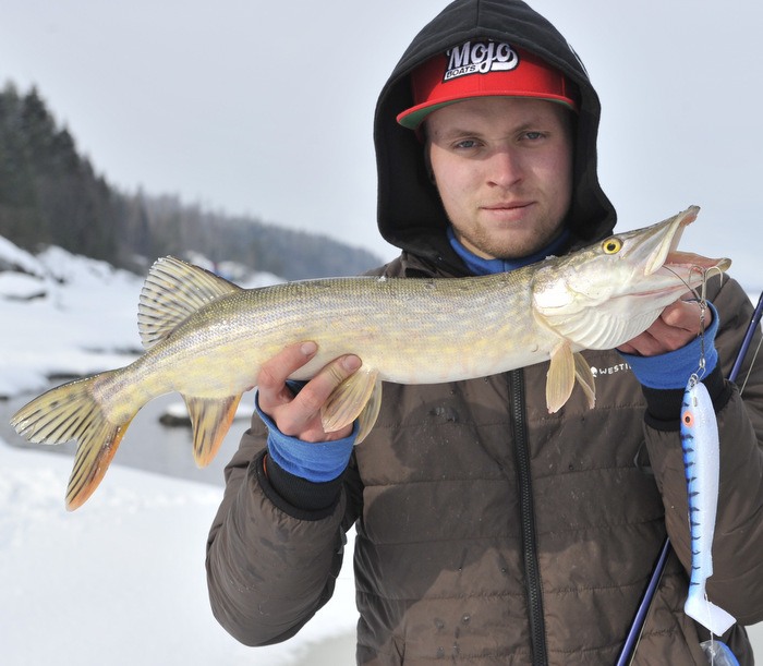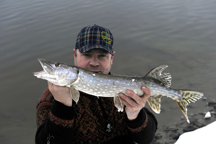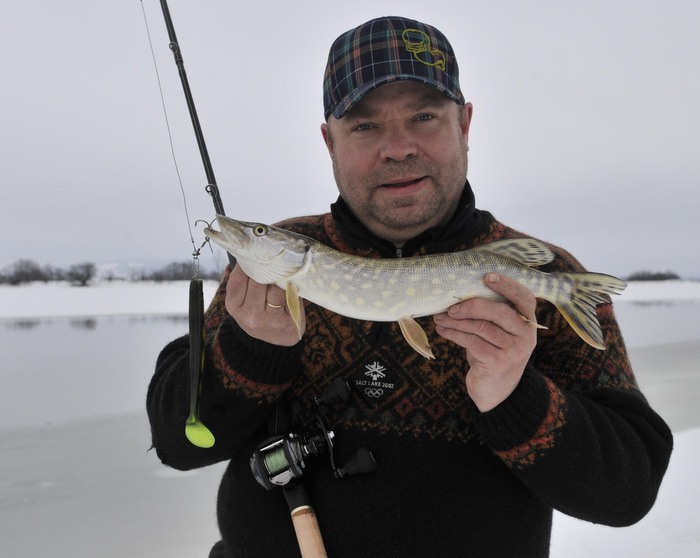 Vi var en fin gjeng på tur i går (lørdag 5.mars 2016) på gjeddejakt. Snøen har lavet ned de siste dagene, men tempen og vinden har gjort Nitelva fiskbar over store områder. Det er veldig fint å gå langs land og isbelte er minimalt mange steder.