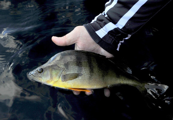 En abbor på 420gr, ja 420 gram du leser riktig, gir meg gåsehud. Jeg er litt usikker på om det er mulig å ha mer flaks. Første kastet for dagen med en kreps, abboren tar i droppet og vips så har jeg min første abboer tatt på kreps. Ikke mye vitenskapelig tenking bak en slik fisk. Men skitt au, det er en flott start på målsetningen for 2016 som er å bruke mer tid på fiske etter abbor, og da først og fremst med kreps. Må si jeg likte formen på fisken, skikkelig høy rygg, noe jeg tror vitner om gode forhold for abboren i dette vannet. Nå glemte vi helt å måle «beistet» så noen lengde foreligger ikke. Uansett utrolig moro for min del og en skikkelig inspirasjonsfisk.