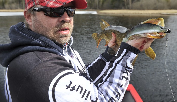 Em skikkelig sur søndag i slutten av april der fisken på samme måte som oss ble preget. Til og med tranene og andre fugler var helt helt stille. Utover dagen så tinte både vi og naturen litt opp og fisken begynte å bli bitevillig. Gleden med abborer var helt rå selv og er meldt inn i abborkonkurransen (er vel den minste som er meldt inn) hehehe. Men jeg lar meg ikke slutte å fasineres av de brutale gjeddehuggene når man spinnfisker monotont med shadder, selv om fiskene ikke er av de aller største er det skit moro.