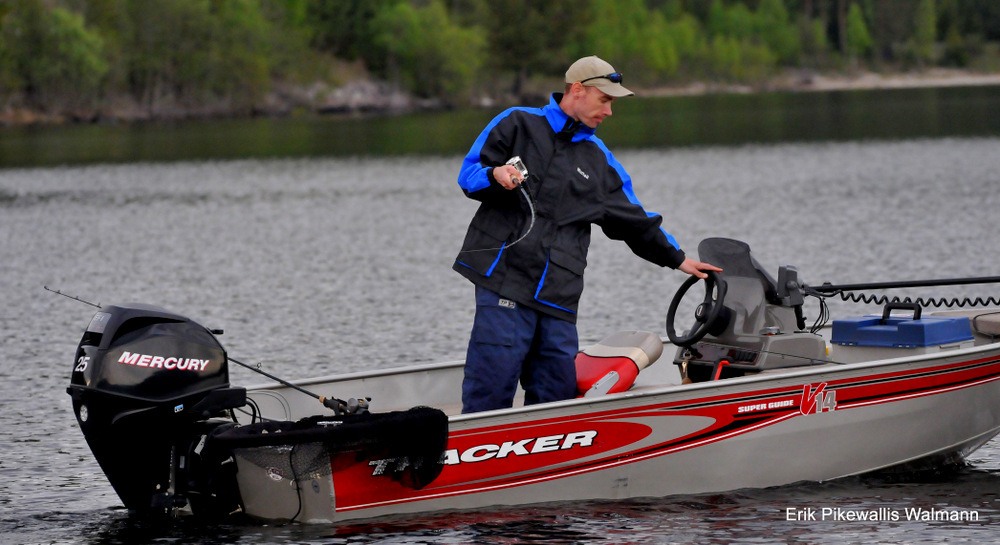 20 varmgrader ute Walmann setter på seg tjukke sokker og iglostøvler. Det er godt man kjører tracker da kan man gå barbeint. Sikkert mange som lurer på om det er smart i min båt, men etter å ha ryddet og vasket båten er det meste trykt, ihvertfall for en stund. Husker jeg lo litt av den såkalte «teppebåten», det var det jeg kalte Michale sin tracker når han kjøpte sin for mange år siden. Jeg var så sikker på at teppe i båt var noe av det dummeste. Men det er noe av det mest geniale når man tenker komfort. Deilig å gå barbent, ikke fester krokene seg og renholde er en liten spylesesjon.
