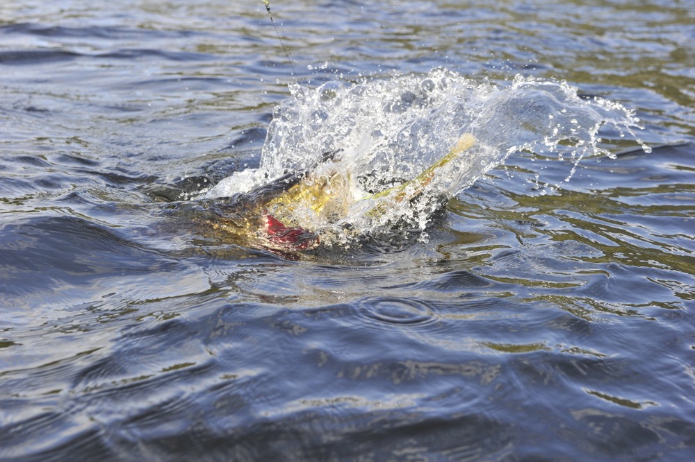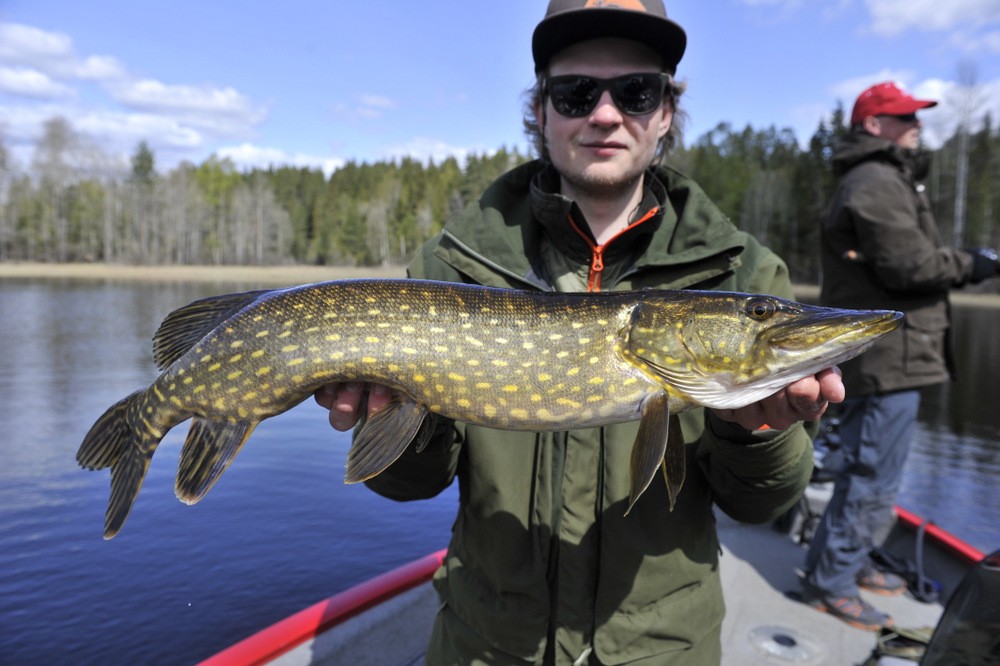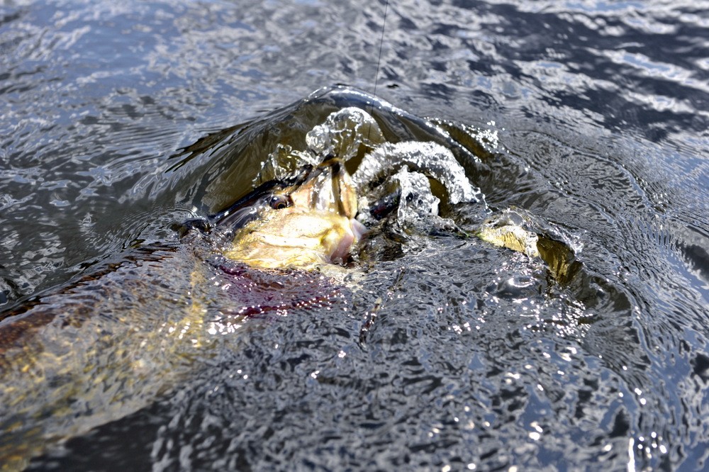 Det var skikkelig fart i gjeddene, huggene var brutale og fighten var og  selv ei ikke alt for stor gjedde setter vannmassene i bevegelse og de tro båten rundt.