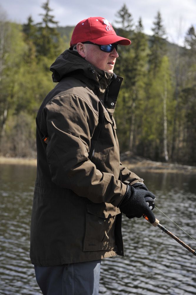 OFA’s fluefisker fikk gleden av å begynne ballet og det gikk vel ca. tre kast så sto han der med dagens første fisk. En helt OK fisk med god kondisjon. Fisken tok en tysk vibrotail av et eller annet slag. Et av Bjørna’s hemmelige våpen, for det skulle vise seg utover dagen at denne karen hadde et ess i erme til.