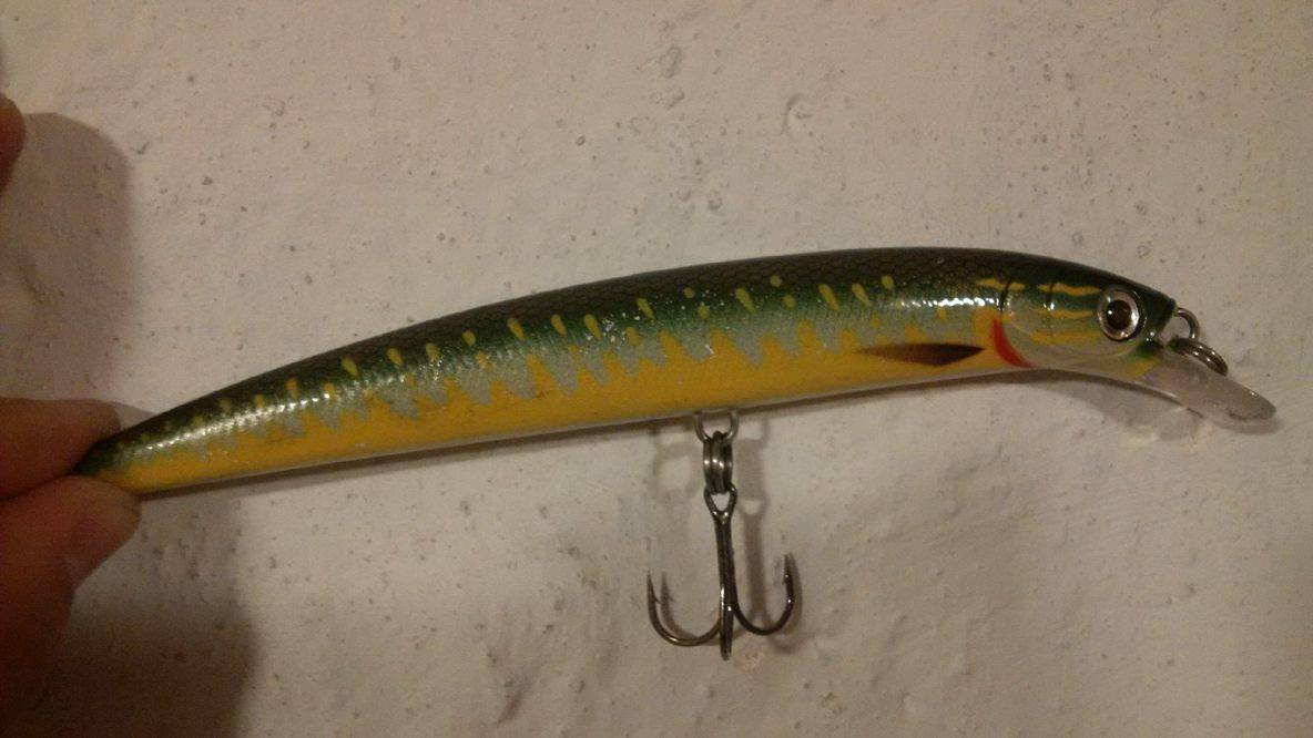 Bjørnar dro denne wobblere stille opp av skrinet sitt. Vi andre la vel egentlig ikke merke til det. Men når stange sto mer bøyd en rett opp så måtte vi jo spærja om hva han hadde satt på.  Lett pulling og bang, lett pulling og bang, gang på gang på gang.