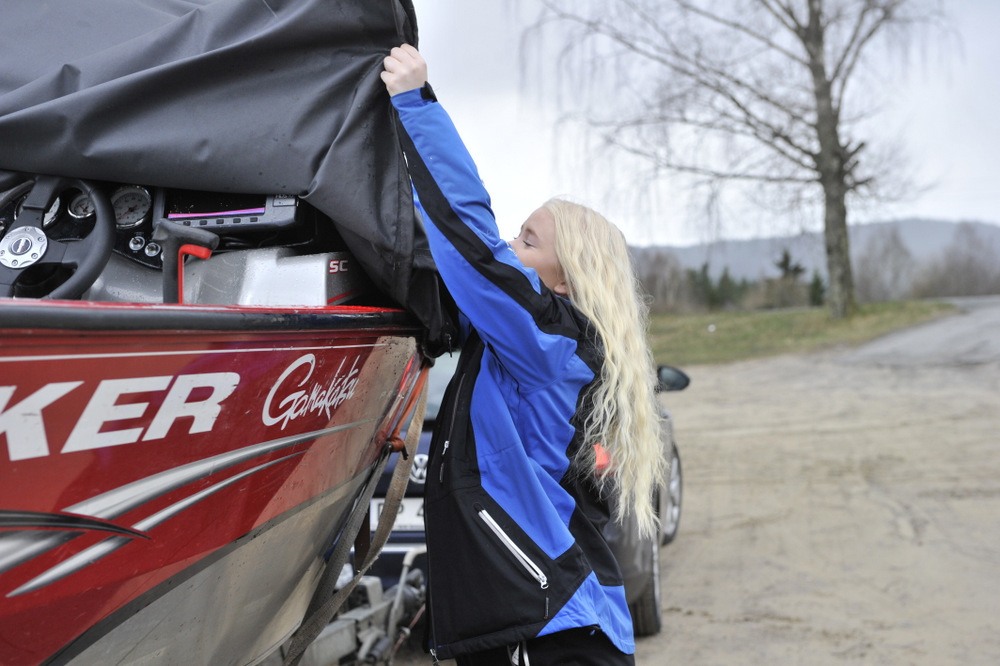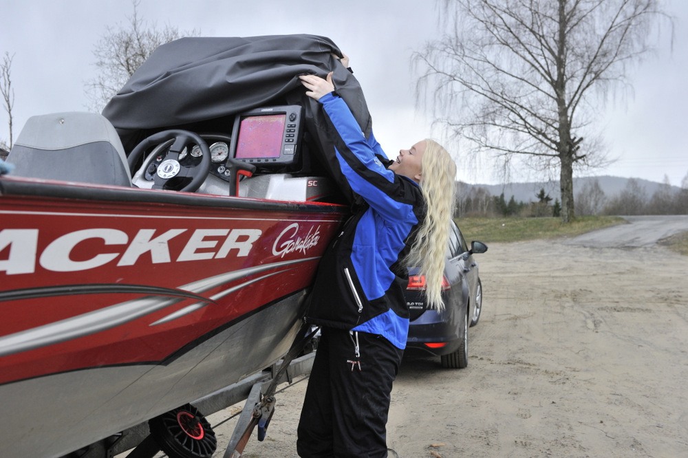 Fr. Fest og morro har satt seg inn i rutinene fra man går ut av bilen til man har båten på vannet. Og hun utfører med stil selv om disse karbissmørbrødene nok rullet i bakhode.