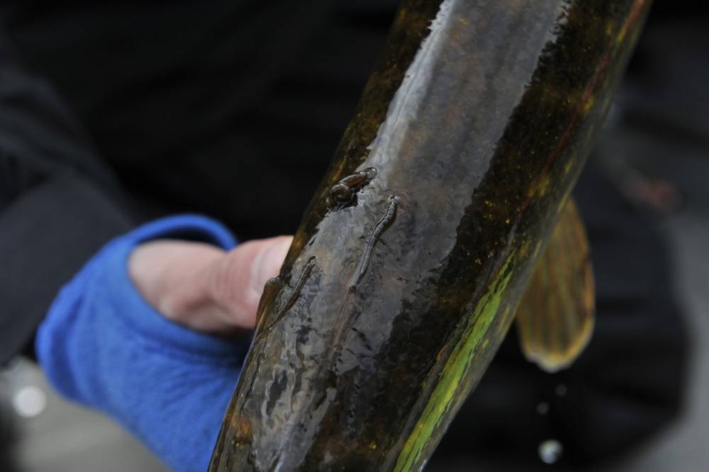 Fredrick nappa opp fisk, og etrer som det var igler på de som sto de vel rimelig tett mot bunnen.