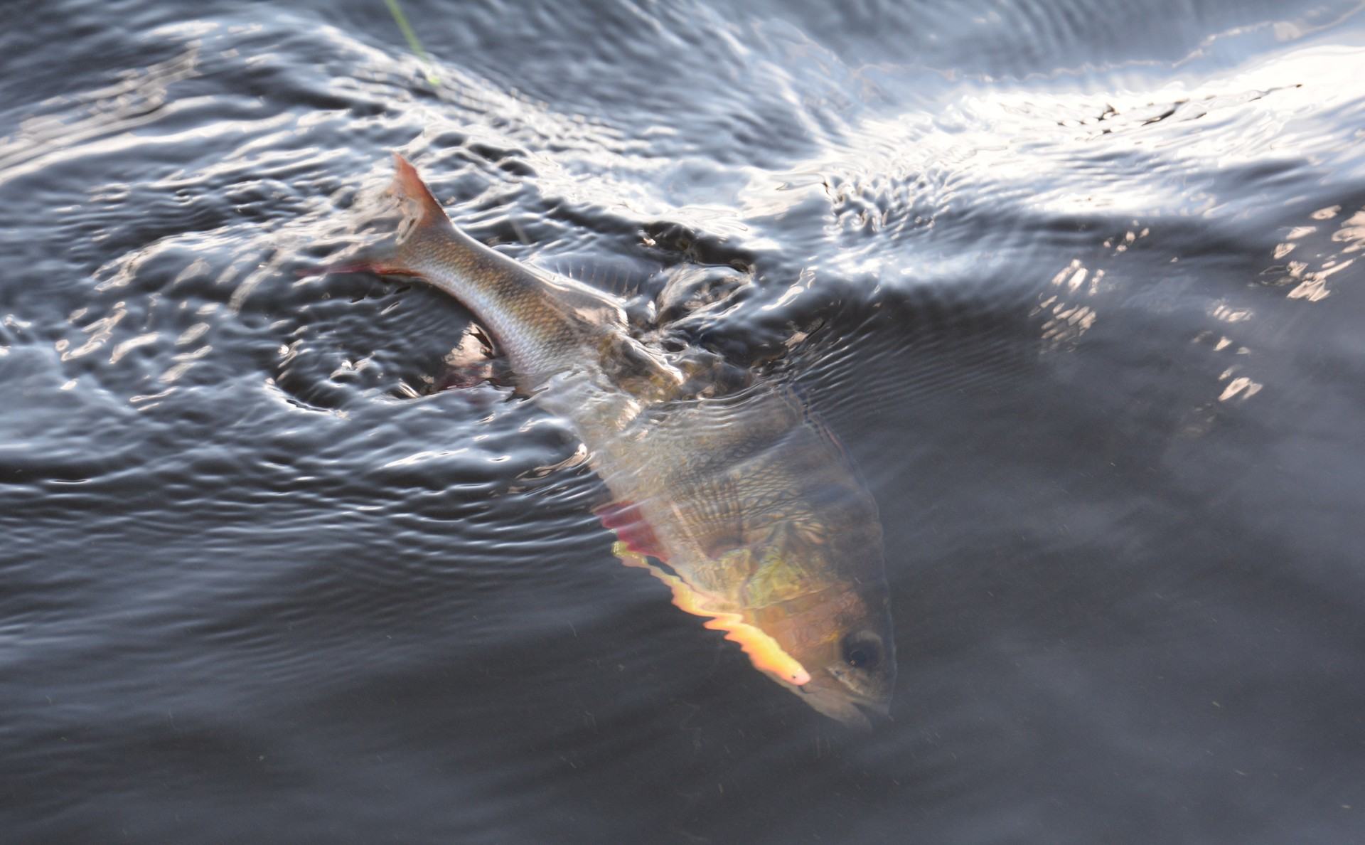 De mindre står gärna nära struktur och i mina vatten finns inget gräs. Så av naturliga skäl så känner de sig tryggare vid struktur, de lite större abborrarna kan gruppera sig och börja cirkulera nu de kommer som små vargflockar. Sedan har vi de riktigt stora ja stora för att vara i mina vatten…..