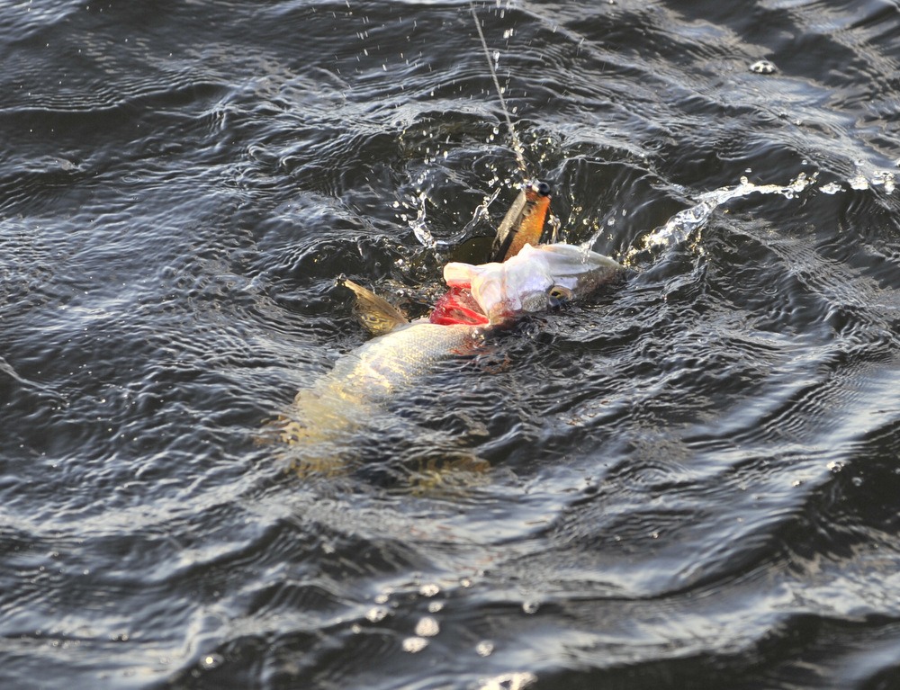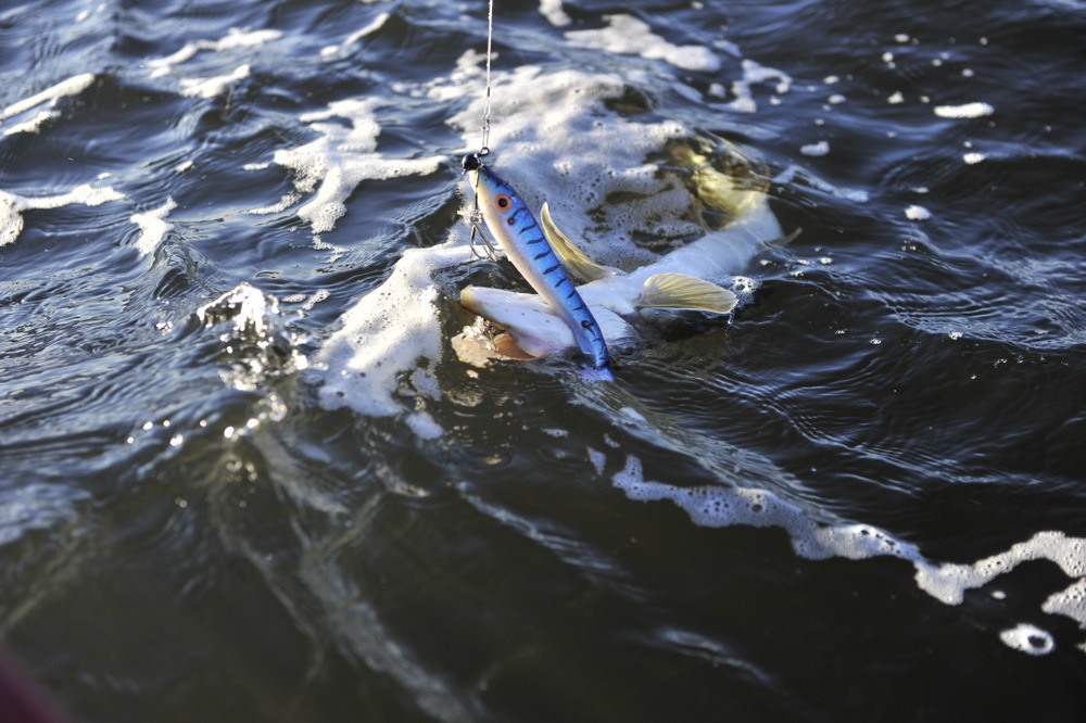 Dagen første kast ble utført av Fredrick som hadde glemt at han hadde kråkereir på snella fra sist tur, så det snappa i lufta. Men med Markus i båten så fikk vi den jaggu opp igjen gitt. Det samme skjedde med Markus litt lengre ut på dagen og da fikk Thomas fisket den opp igjen, veldig flaks begge gangene.
