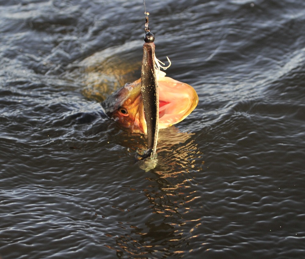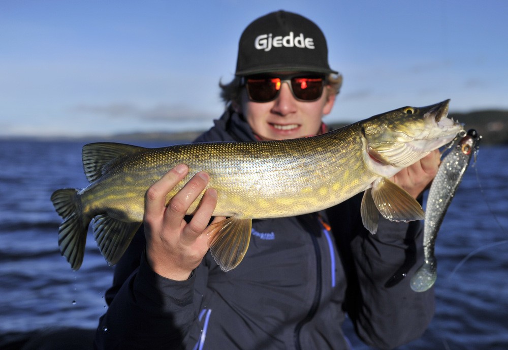 Pigking leverer for Markus. Han hadde et sterkt ønske om å få fisk på denne shadden å det skjedde på første kastet.