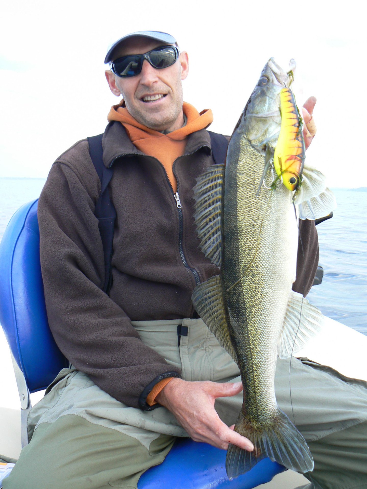 Also the bi color 120cm pike that you saw earlier in this interview was caught on 1-2 m deep water, and the fat perch on a huge shad.