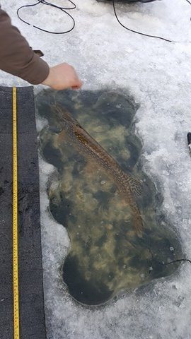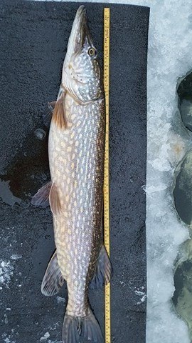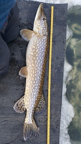 Vi er fortsatt i februar og gjeddene begynner å flytte på seg. Lørdag hadde vi en stor gjeng som skulle møtes på isen..jeg, Vidar og Tommy planla og møtes kl 06.30 ved parkeringa for og få 30min forsprang på min fetter Mats og gutta, Pål og Alexander, men i det vi hadde parkert snurra di inn gitt. De hadde tenkt det samme som oss vi gikk følge ned og ut på isen. Her ble det 4stenger hver så nok av stenger ble det. Så ut som en super g løype utpå isen der som vanlig startet bette på morran. Det pep og hyla her og der etter noen små i starten så runner det på samme hølet Vidar tok en fin sist helg. Det viste seg og være nok en bra fisk denne gang æv. Han sliter stort med små sneller og myke stenger men jaggu fikk vi den opp. Det var noen minus den mårran. Så vi hadde laget klart ett basseng som vi legger fisken i. Her har jeg borra 8-9hull ved siden av hverandre. Slår vekk imellom med øks og ett lite hull så bassenget fyller seg. Tilbake til fisken. En bra 1m+ fisk på 7.88kg. Men vi av kroker løper de andre rundt etter run første 2 timene hadde vi 6-8 gjedder. Nok engang kjører Vidar fisk. Denne var om jeg ikke husker feil 1m og ei vekt på 6.24kg. Etterpå får jeg en tynn sak på 5.8kg men morro alikevell. Etter mye svette og slit bikka kl 11 og da roet ting seg litt. Da var antallet oppi ca 12 gjedder.. her var vi som sagt mange så her var det mye gamle fjes å prate med. Morro med slike venner. Dager fulle av tøys og latter etter kl 12 døde egentlig alt av.så ble mye kaffe og trøste spising utover dagen. Ett run i ny og ne. Vareopptellinga havnet på 15-17 gjedder i løpet av dagen.