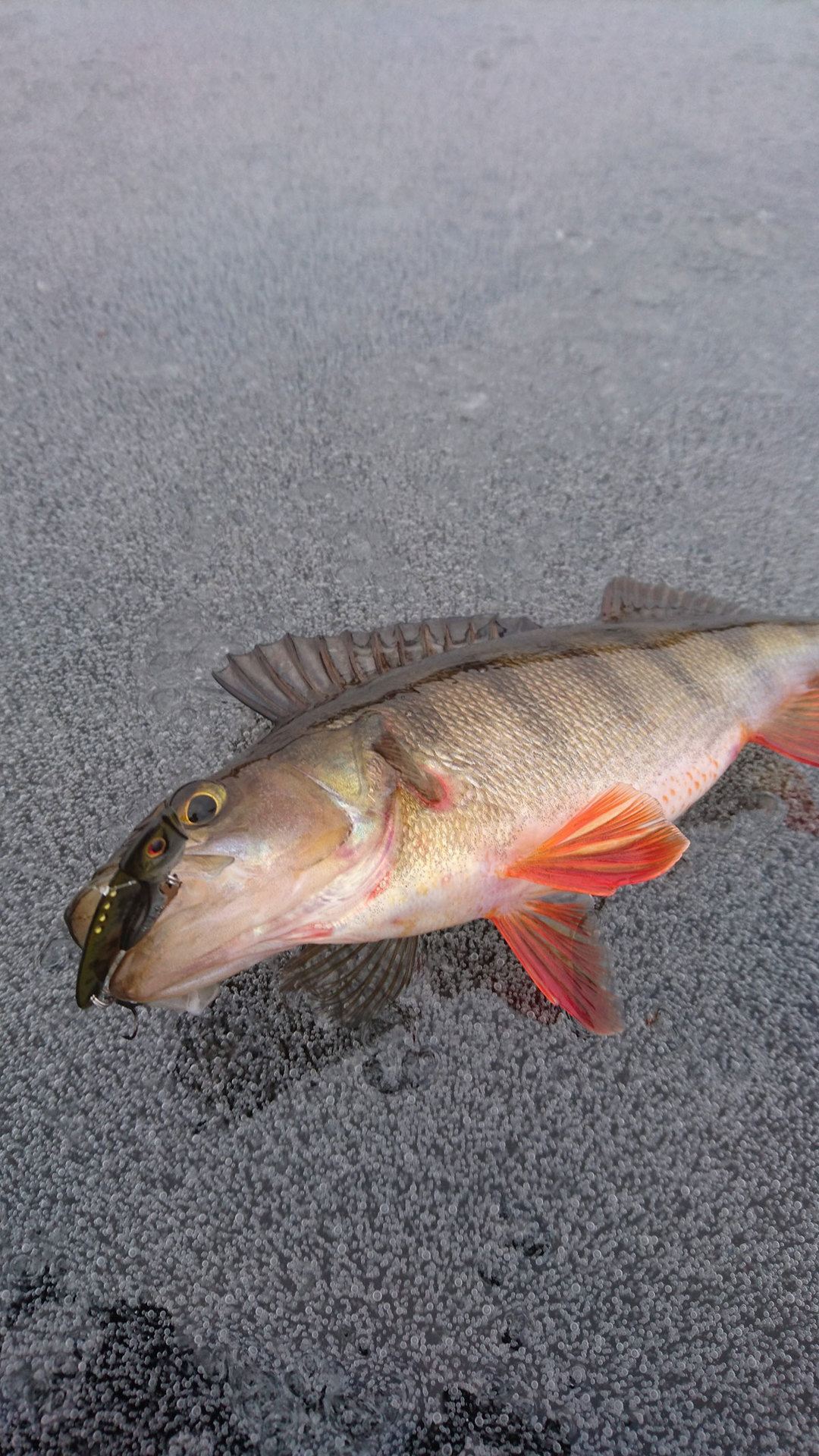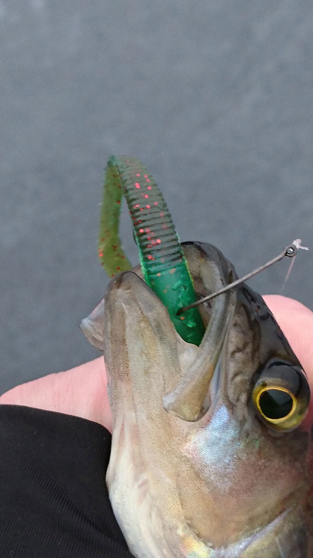 Så jäkla kul rippa upp den gav kraftiga vibrationer vilket jag tror kan vara riktigt bra ibland. Fiskade den strax ovanför botten drog upp den kraftigt, lät den sjunka och höll still. Huggen kom när den var still. Fiskade med Gunki Kaiju Blade, här var 43mm bäst den ger lättast vibrationer. Fiskade med betet som de kommer men här kan man trixa mer med betet, kan vara ett hett alternativ i framtiden.