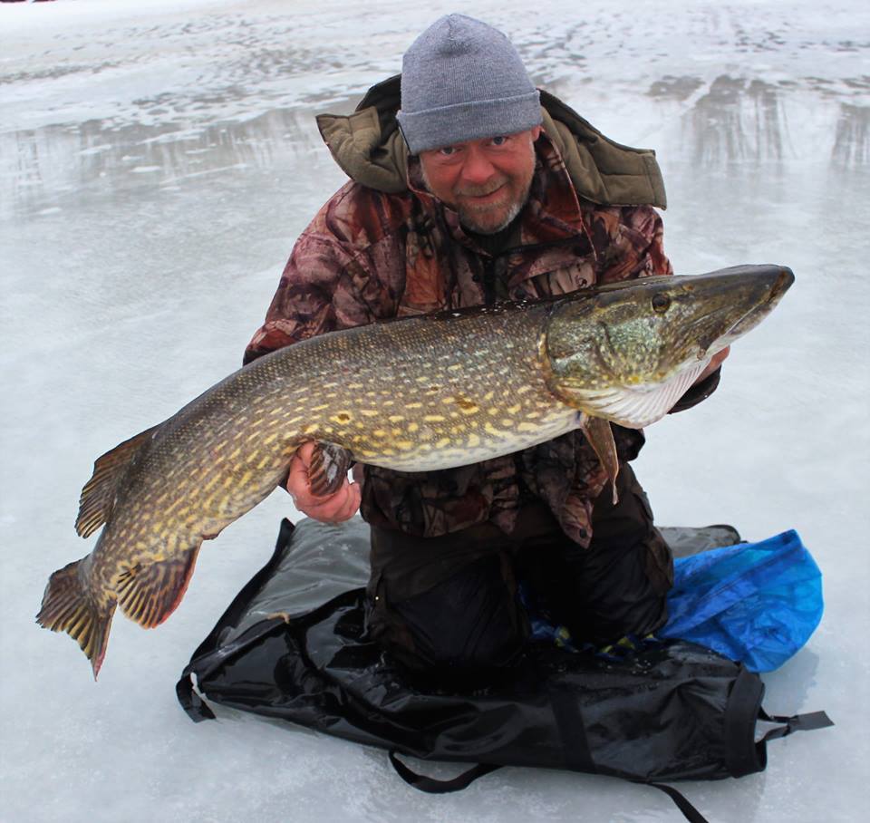 Bjørn skriver: Fortommen stakk ut i munnvika så sleit med å få styrt den opp hullet,endte med at jeg stakk hele armen nedi og fikk gjellegrepet påa under isen. Fiska i over fire timer uten et hæla napp før denne gikk på. Denne ble tatt under ismeite ved en kant på rundt 4 meter på et sted Bjørn ikke trodde huset gjedder på denne størrelsen. Hvor lurer nok mange på men det vet bare Bjørn 🙂 Fisken ble etter veiing og måling sluppet tilbake i sitt rette element.