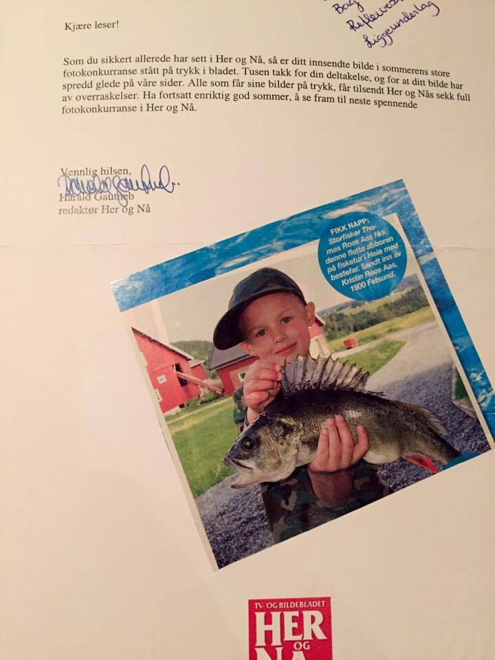 Mamma syntes det var stas å sende inn bilder av meg til fiskeblader og lignende, så det kom premier i fleng – sluker, spinnere, kniver, fiskeveske, medaljer, og masse annet fiskerelatert. Jeg fikk til og med en Hunter-kniv.