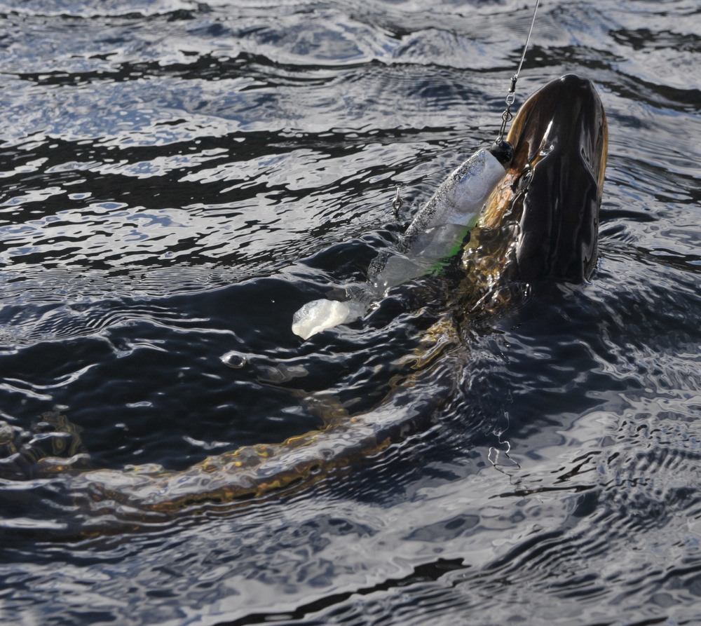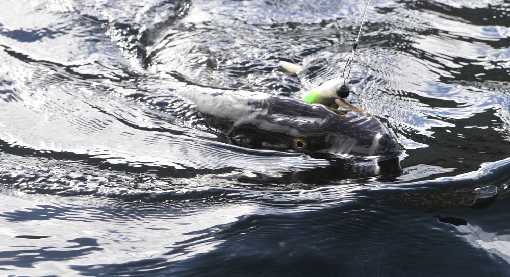 Denne tok grunt, helt inne på 2-3 meter og kom i en helvetes fart. Den første tok også utrolig brutalt.