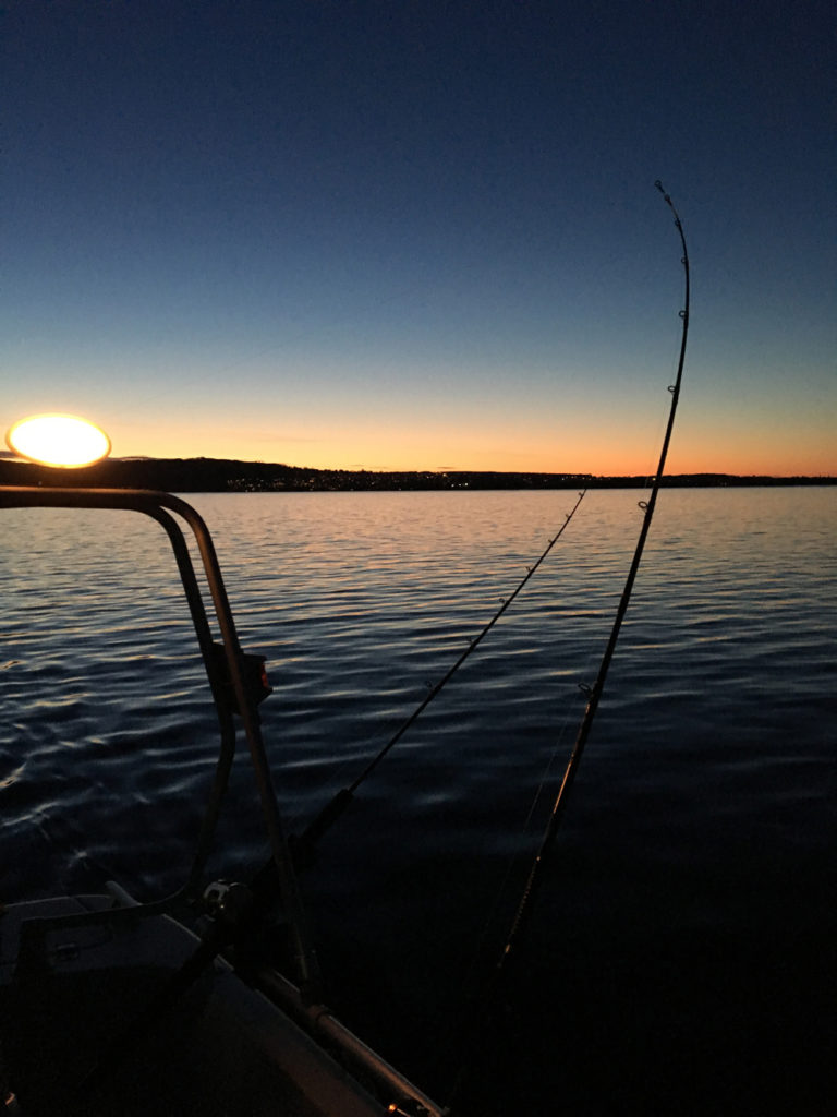 Det skulle gå nesten 1 uke før det endelig ble vår tur. Klokka ble stilt til den ukristelige tiden 01.58, må være på vannet før sola står opp. Klokka 02.45 var vi på plass i båten, fulle av iver etter å ta årets første mjøsørret.