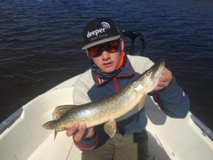 Vi orka ikke å stresse ut om morgenen ettersom natta hadde vært kald, så vi var ikke ute før i 11-12 tida. Vi hadde nylig montert på ny MotorGuide Xi5 i egen båt, som vi gledet oss til å prøve! Markus og jeg startet på en plass vi vanligvis har fått bra med fisk på og grei størrelse, men i dag var det ikke snakk om, bare små fisk… Veldig seriøse gutter da…