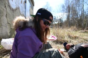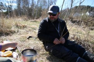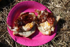 Etter noen trege timer møter vi Erik og Rick, som vi drar sammen med inn til land. Her har mamma kommet og laget lunsj til oss – bestående av egg, bacon, pølser og lomper- helt sjef!
