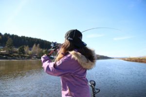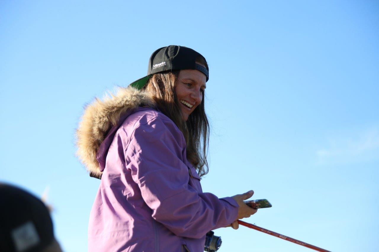 Vi fisker og fisker, mamma begynner å få teken på kastinga – er ikke lenge før det begynner og levere fisk!